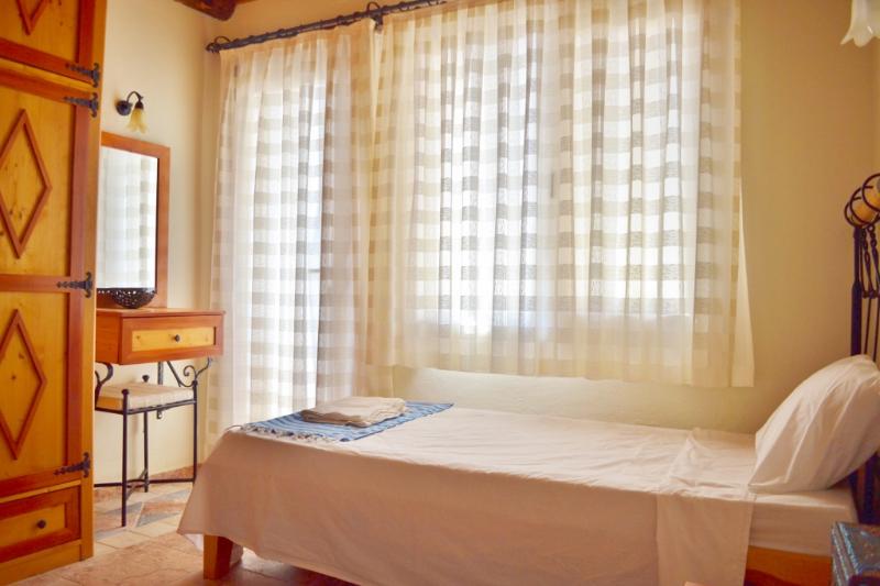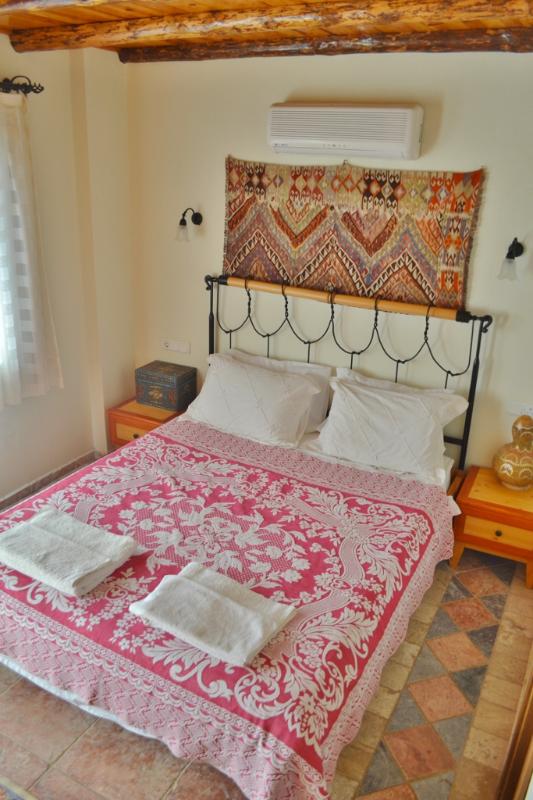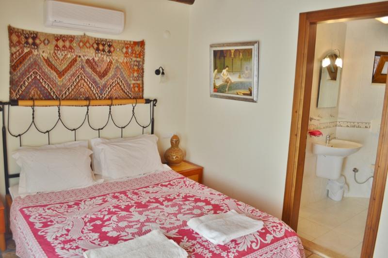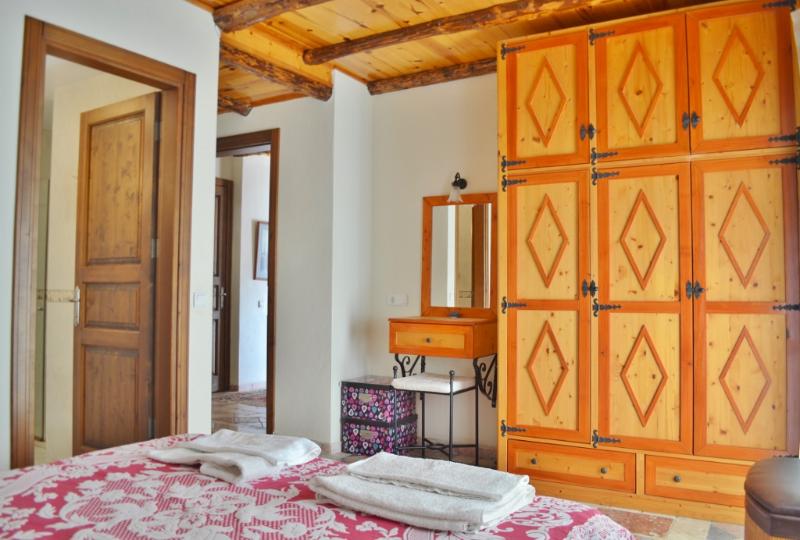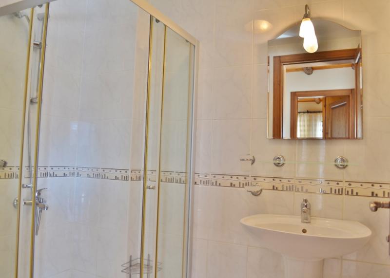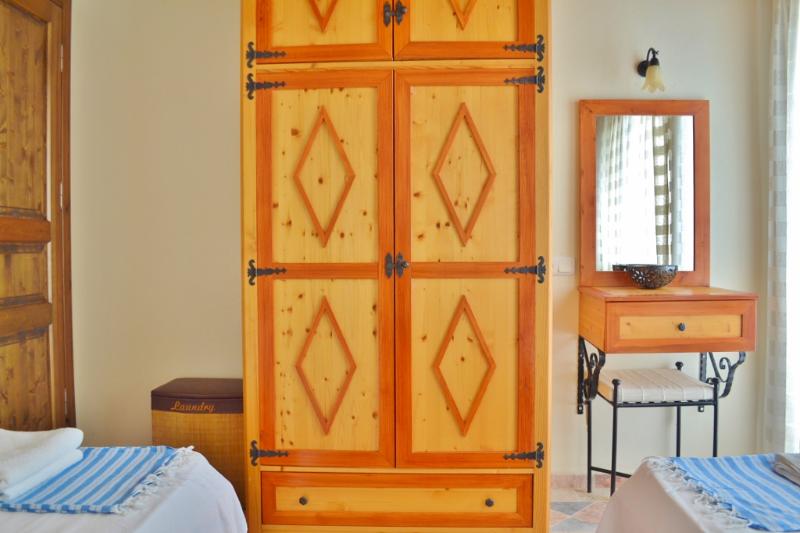 The apartment has two bedrooms- a master bedroom with king-sized bed, en-suite and a twin bedroom with a separate shower room directly across the hallway. Both bedrooms are furnished with handmade traditional wooden wardrobes, bed side cabinets and vanity unit with mirror. A hair dryer is provided in the master bedroom. The bedrooms both have a door leading out onto the balcony.