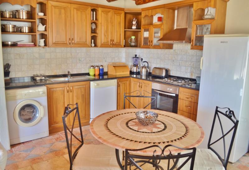 The kitchen is fully equipped with all appliances such as electric oven, hob, extractor fan, dishwasher, fridge freezer, washing machine, microwave, toaster, kettle & fruit blender. The kitchen also has a marble topped table and chairs to comfortably seat 4.