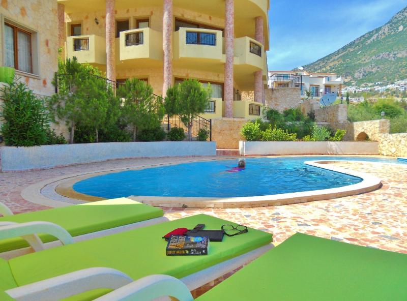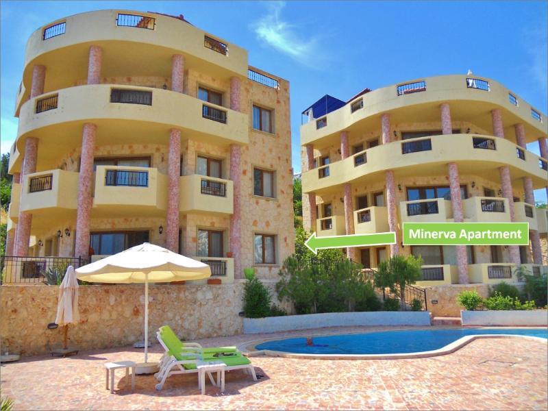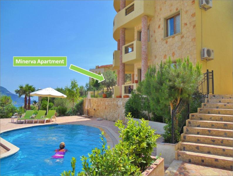 Minerva Apartment is a beautiful 2 bedroom, 2 bathroom spacious apartment in a highly sought after location- just a genuine 1 minute walk to the nearest amenities and an easy 5 minute walk to Kalkan's Old Town. The apartment is located on a peaceful complex of just 6 apartments which share 2 large swimming pools, spacious sunbathing terraces and extensive communal gardens. The apartment is fully equipped and enjoys fantastic panoramic mountain and sea views- everything you need for a perfect get away!