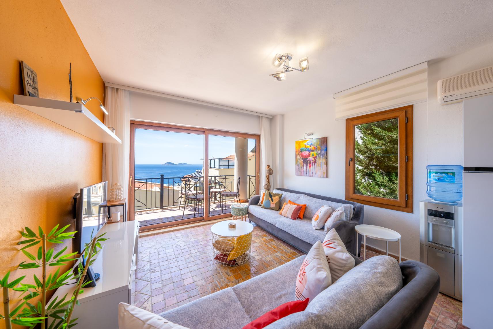 The development enjoys a prime location, one of the best in Kalkan and is only a genuine couple of minute’s stroll to the Kalkan’s restaurants, harbour and beach. The three-bedroomed Sahane Apartment commands spectacular sea views right across Kalkan Bay and out towards Mouse and Snake islands.