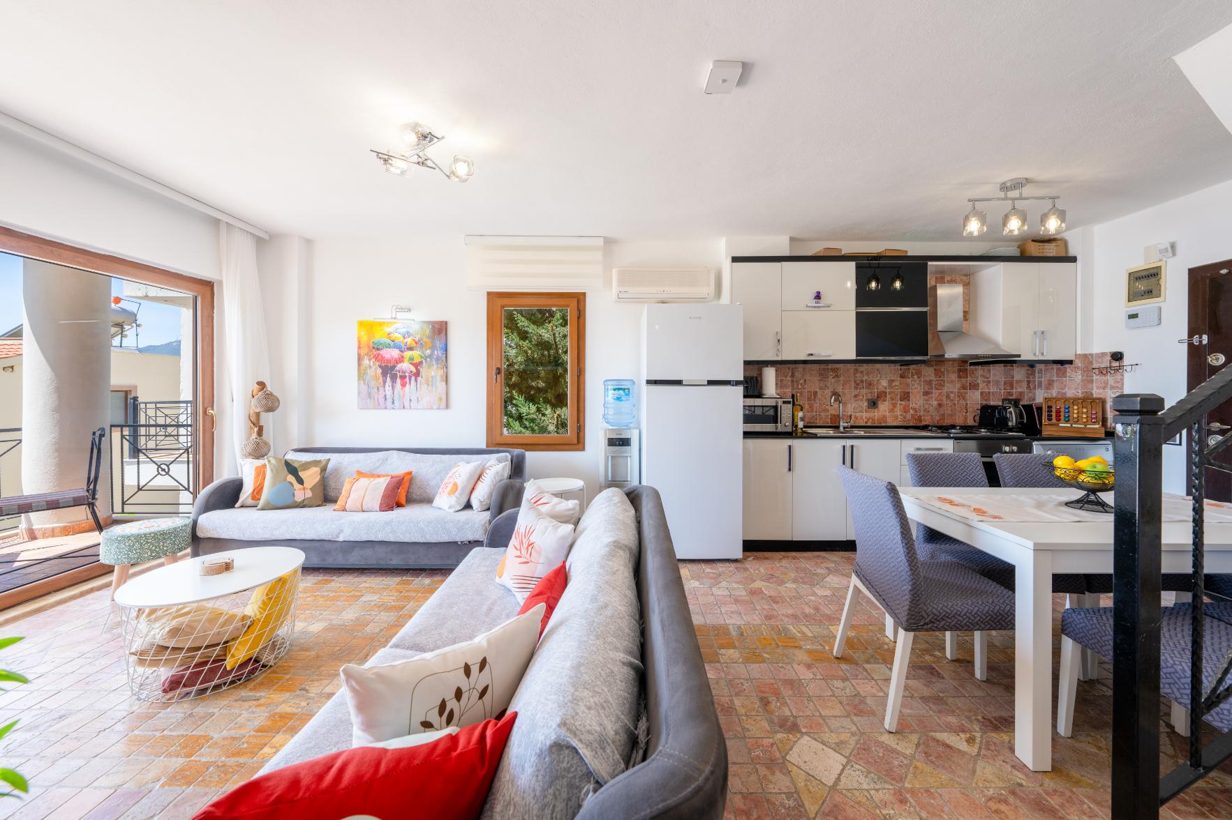 This well-appointed, duplex penthouse property is one of a select number of privately owned villas and apartments in the Dere Development in Kalkan’s Old Town.