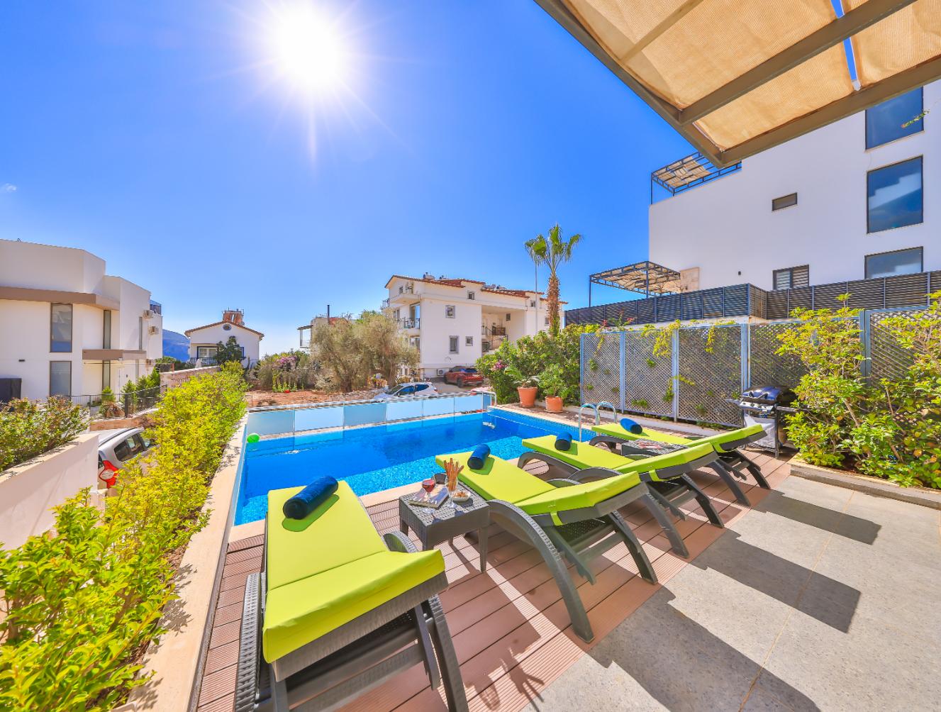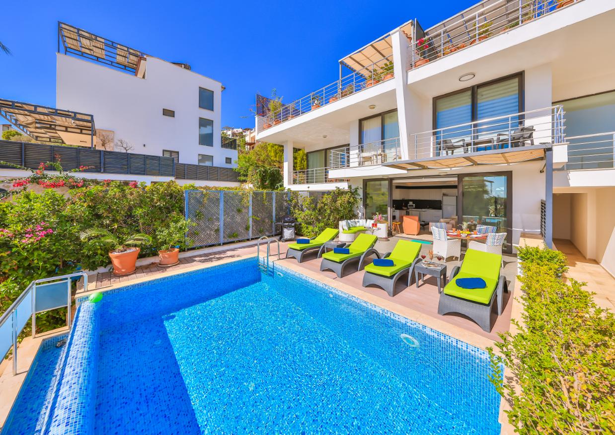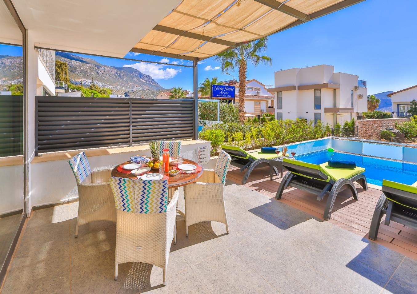 Apartment Shiva is a stylish luxury two-bedroom, two-bathroom holiday apartment in Kalkan, Turkey. Spanning two floors, it offers two private sun terraces, a secluded garden, and its own private pool — ideal for relaxing in privacy. Set within a small complex of five apartments, it’s perfectly located close to restaurants, shops, and supermarkets, and just a 10-minute walk from Kalkan’s Old Town and harbour. Ideal for couples, friends, or small families seeking a modern Kalkan holiday rental with privacy, style, and an excellent location.