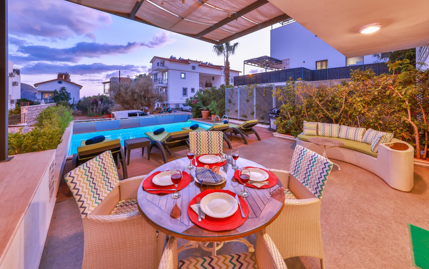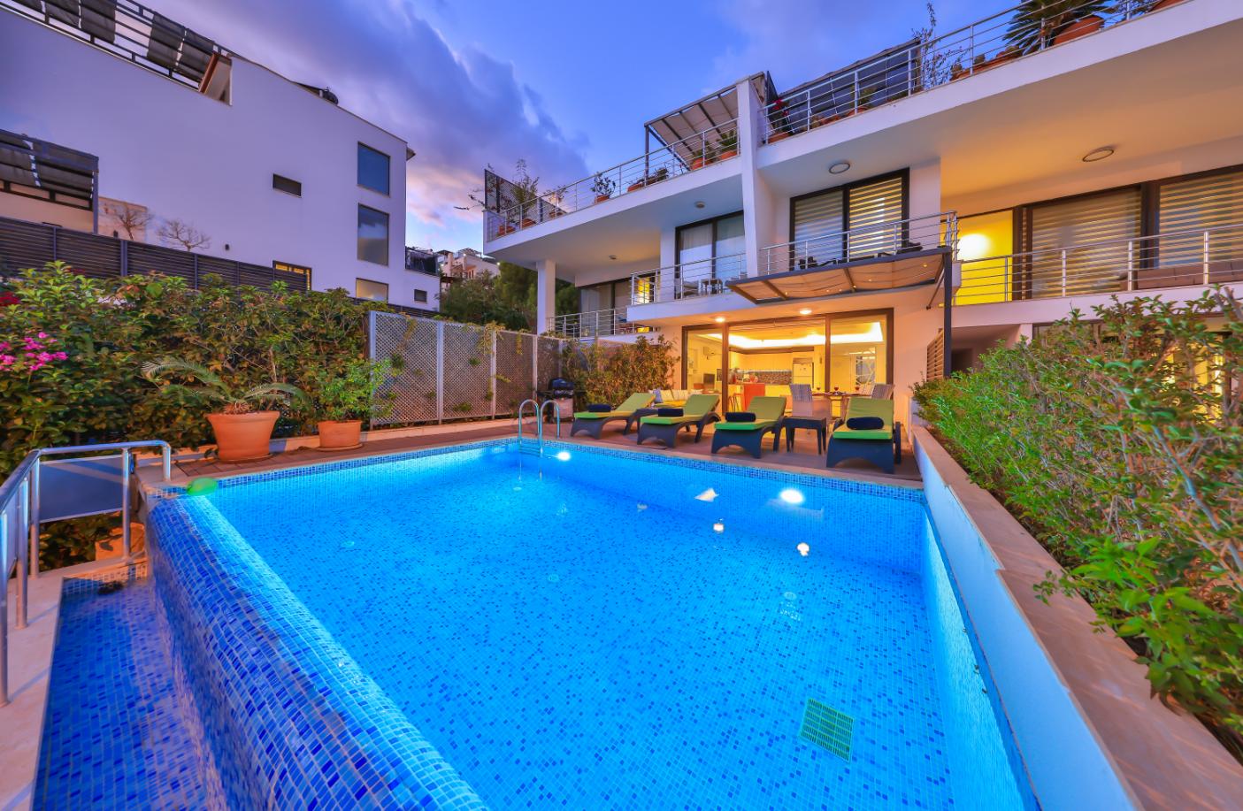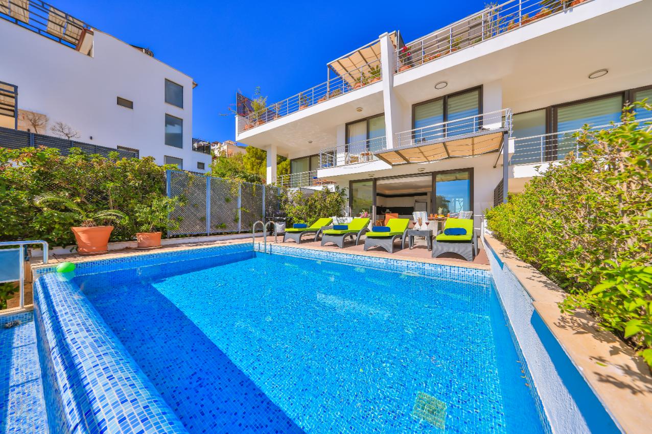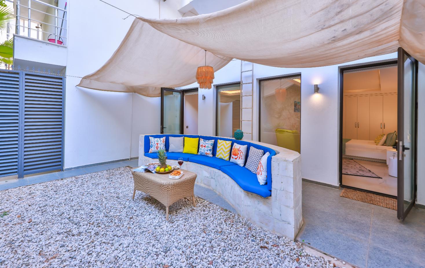 Apartment Shiva is a stylish luxury two-bedroom, two-bathroom holiday apartment in Kalkan, Turkey. Spanning two floors, it offers two private sun terraces, a secluded garden, and its own private pool — ideal for relaxing in privacy. Set within a small complex of five apartments, it’s perfectly located close to restaurants, shops, and supermarkets, and just a 10-minute walk from Kalkan’s Old Town and harbour. Ideal for couples, friends, or small families seeking a modern Kalkan holiday rental with privacy, style, and an excellent location.