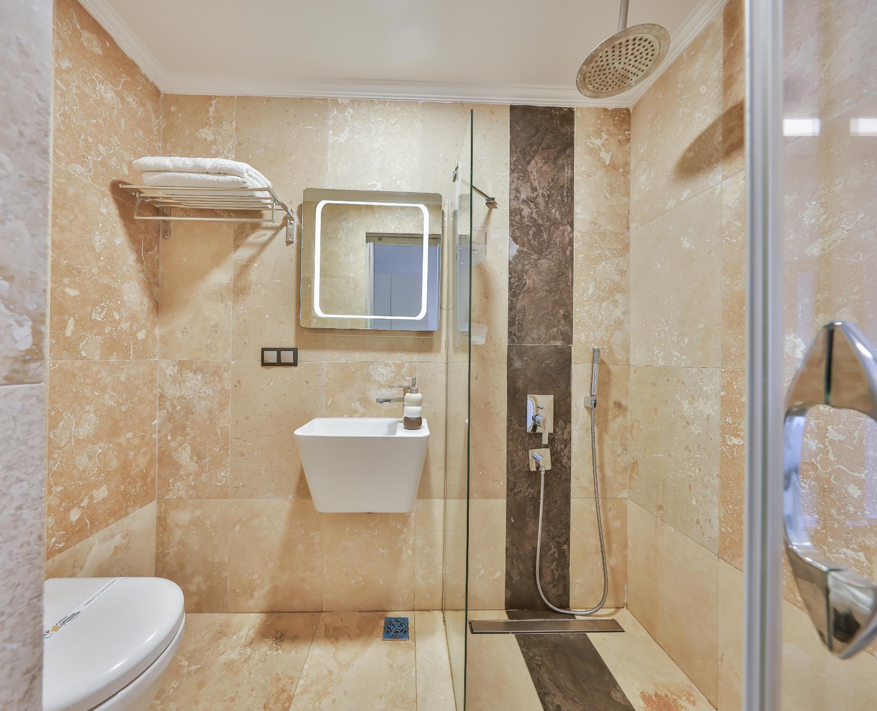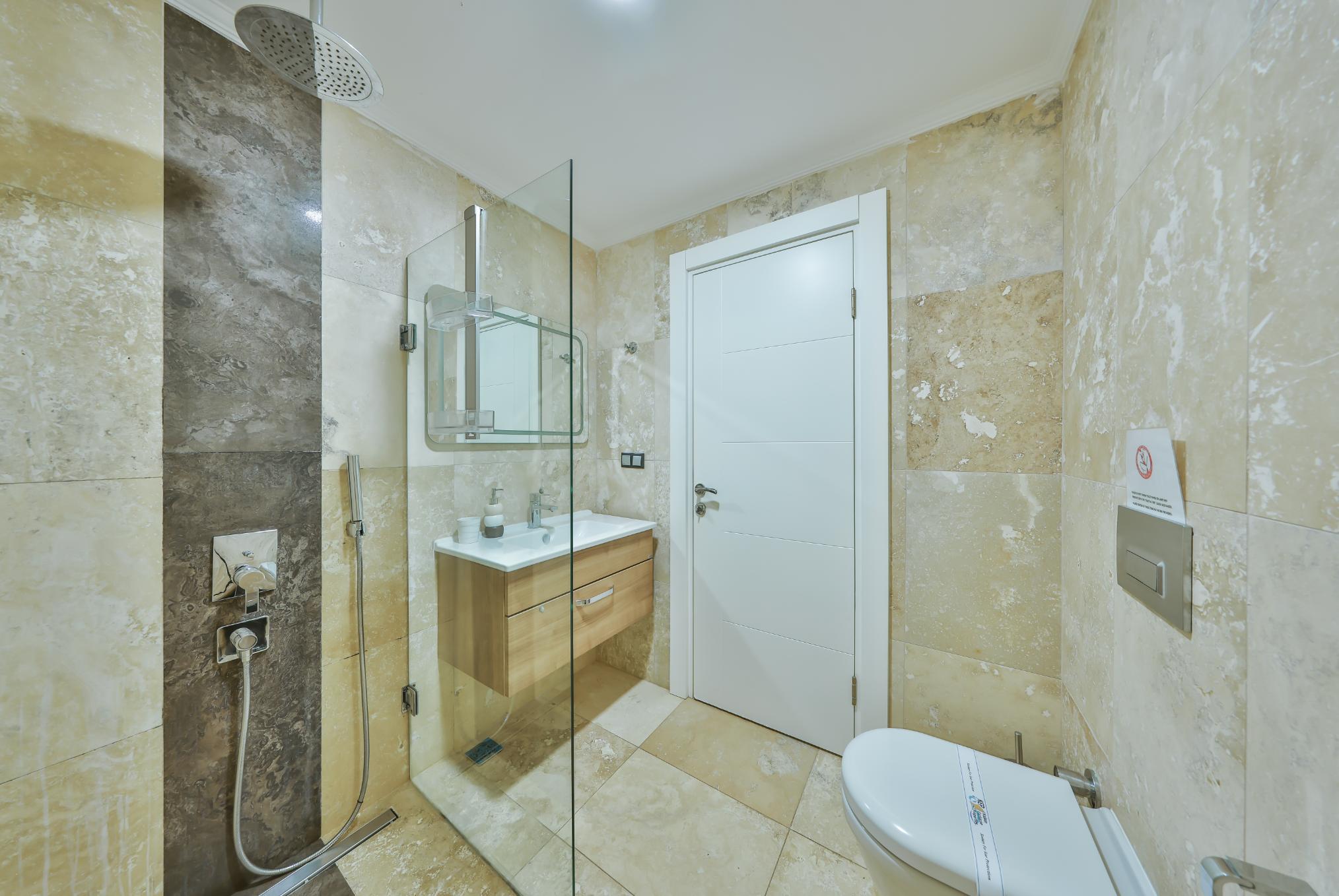 The apartment is enhanced by soft ambient LED lighting throughout, and all bathrooms are modern, equipped with large shower heads.