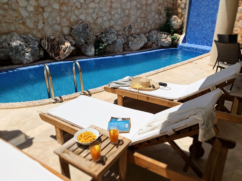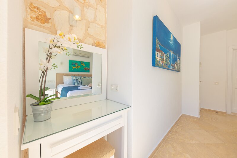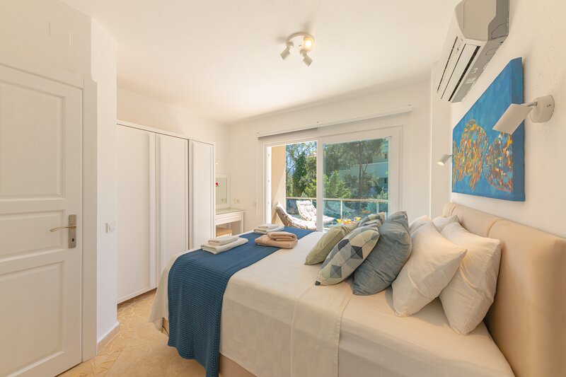 Apartment Solvi is a 2-bedroomed contemporary style duplex apartment arranged over two floors, ground and first floor. This apartment benefits from having its own private terrace and pool as well as use of the large communal pool on the complex.