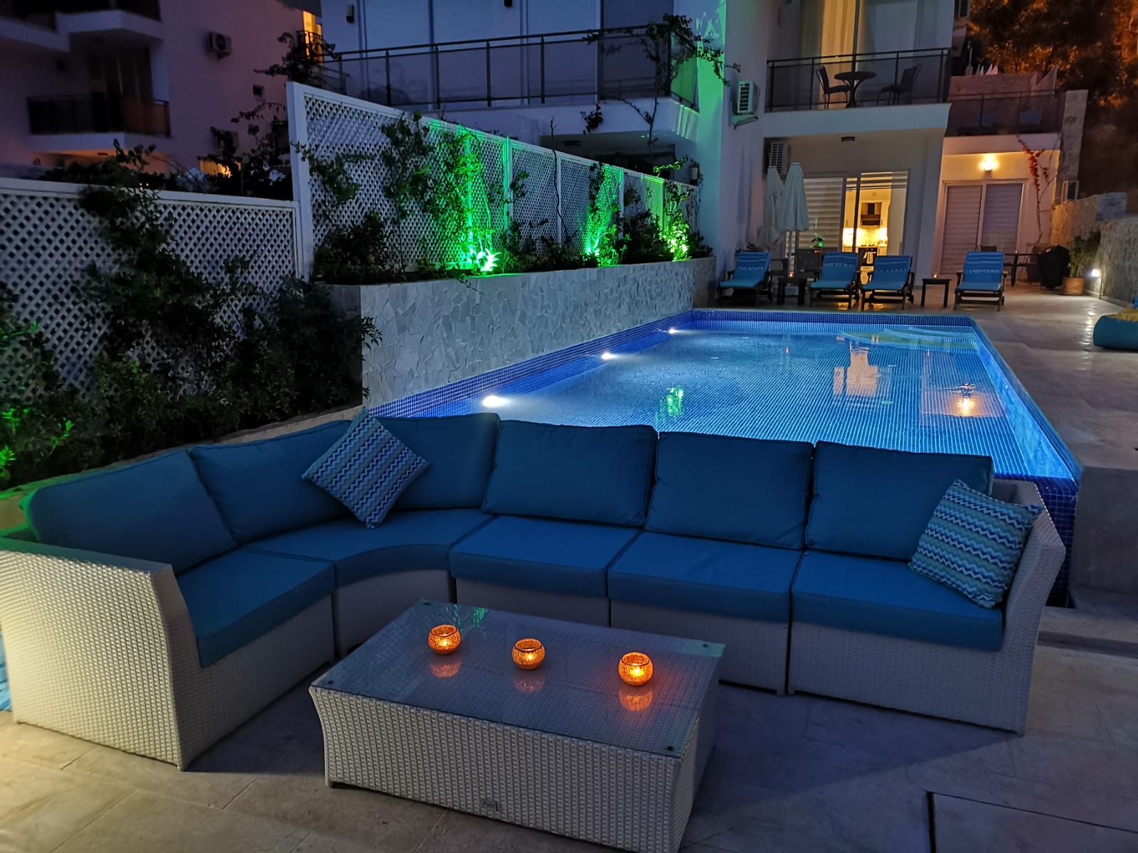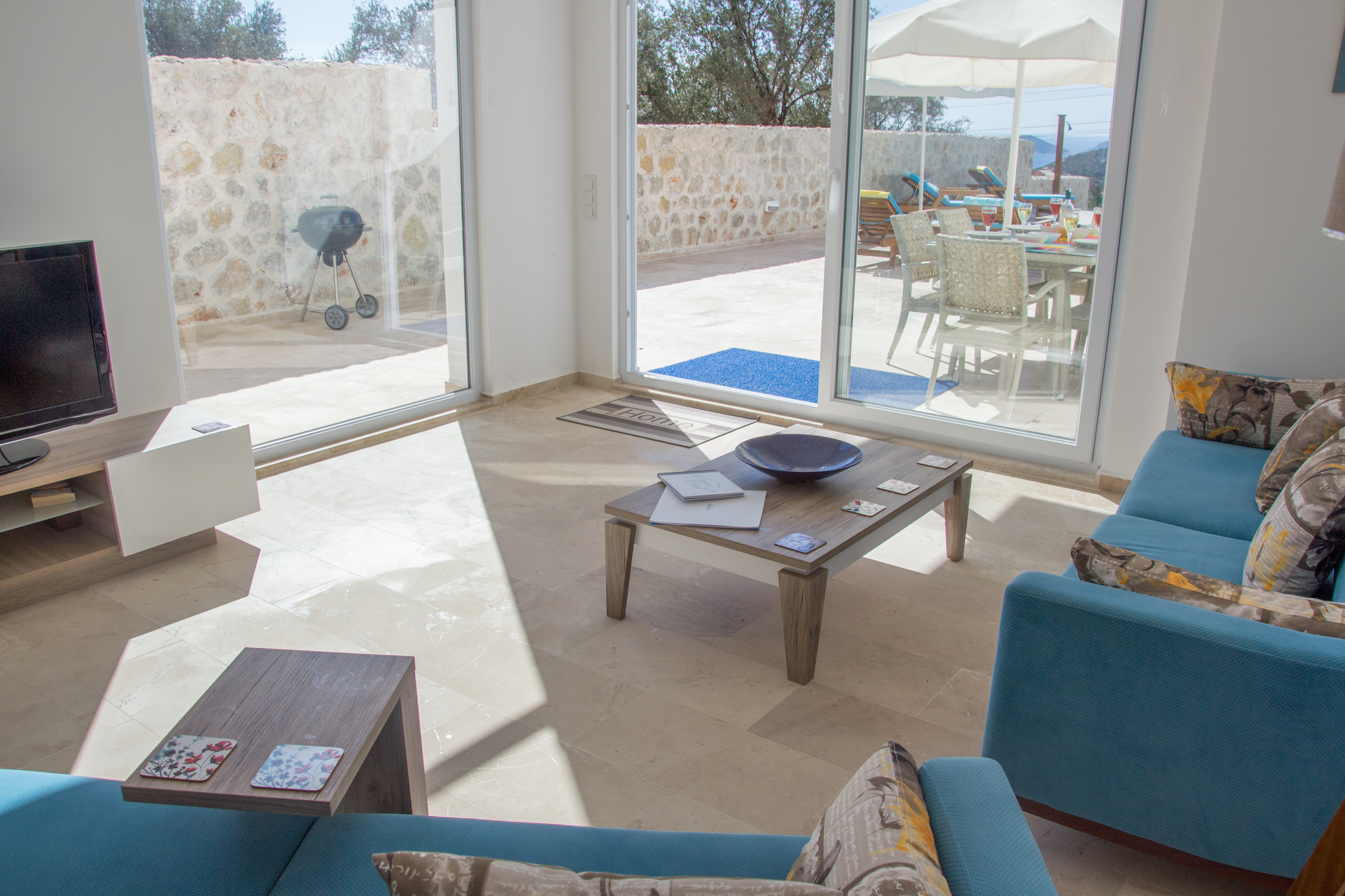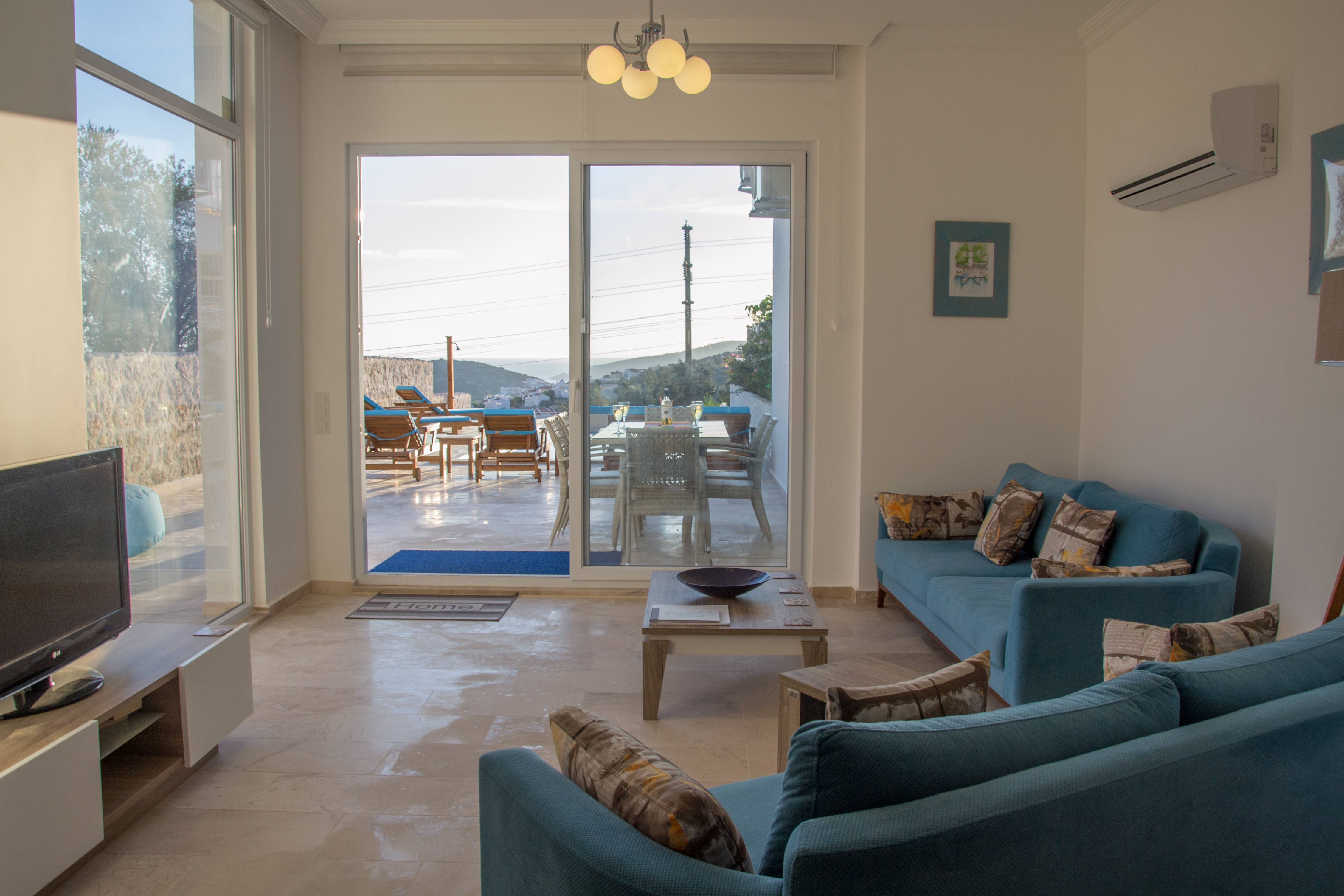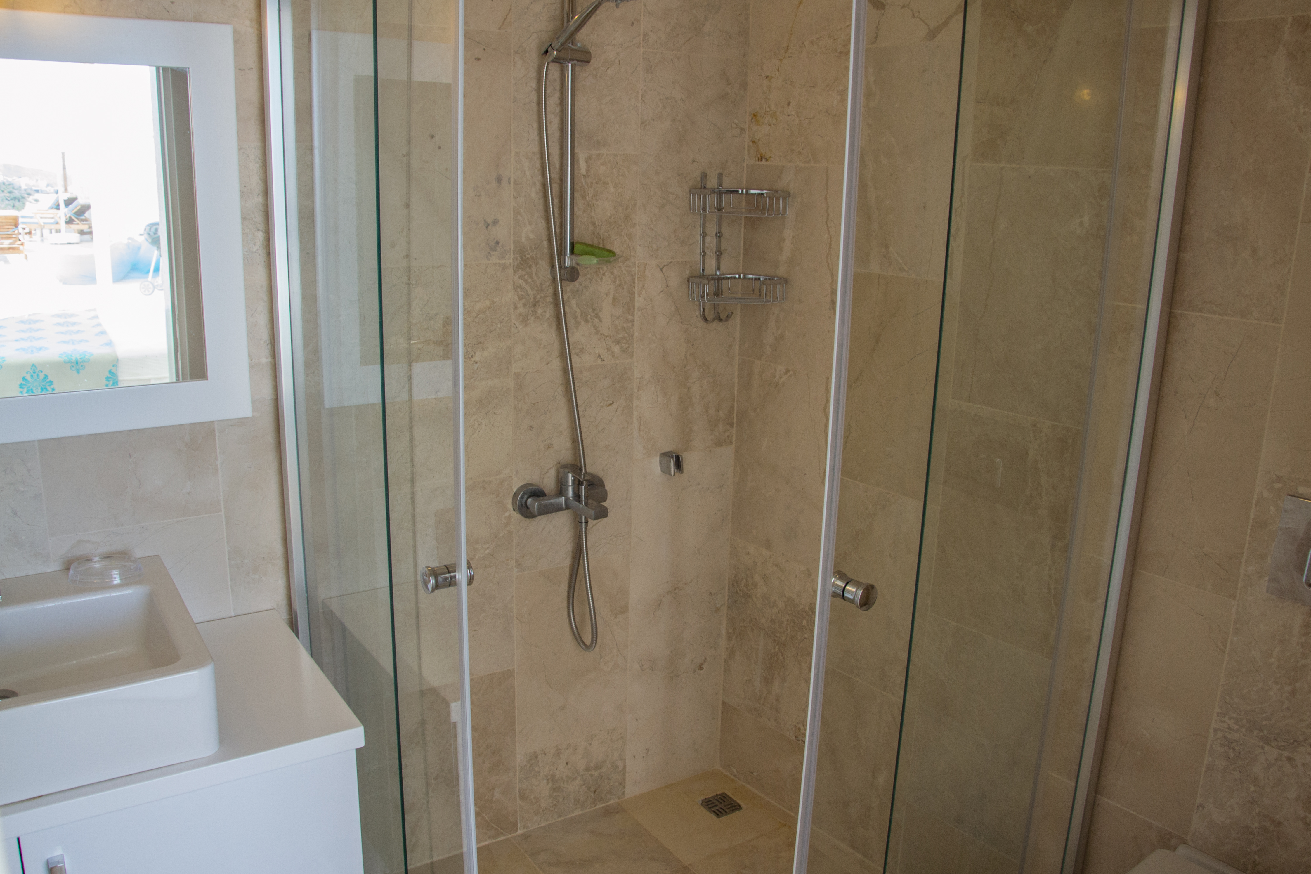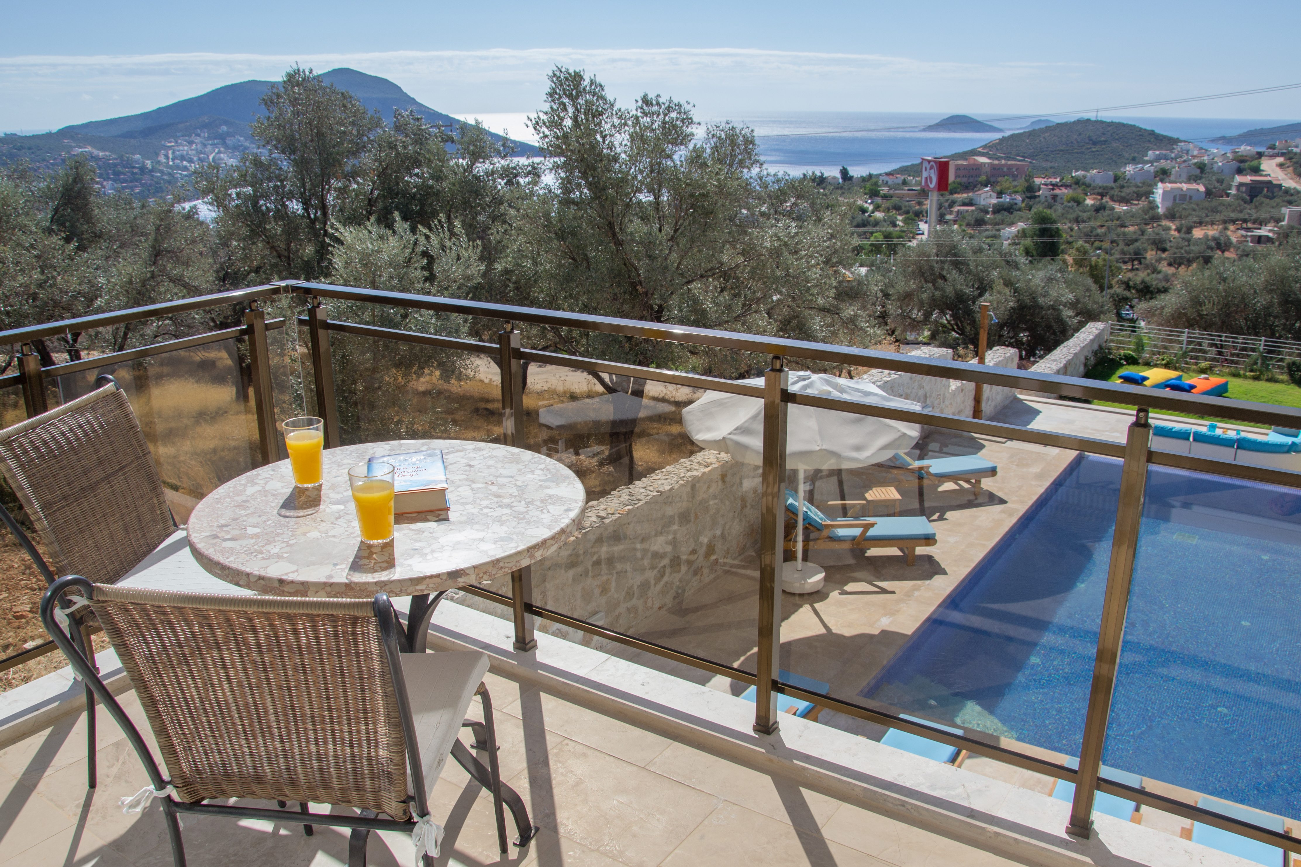 Dalora has a large infinity pool with plenty of space for 6 sunbeds, parasols and beanbags followed by a further terrace with an outside shower and yet more seating area and garden for guests to enjoy the sea or mountain view or the beautiful sunsets in the evening.