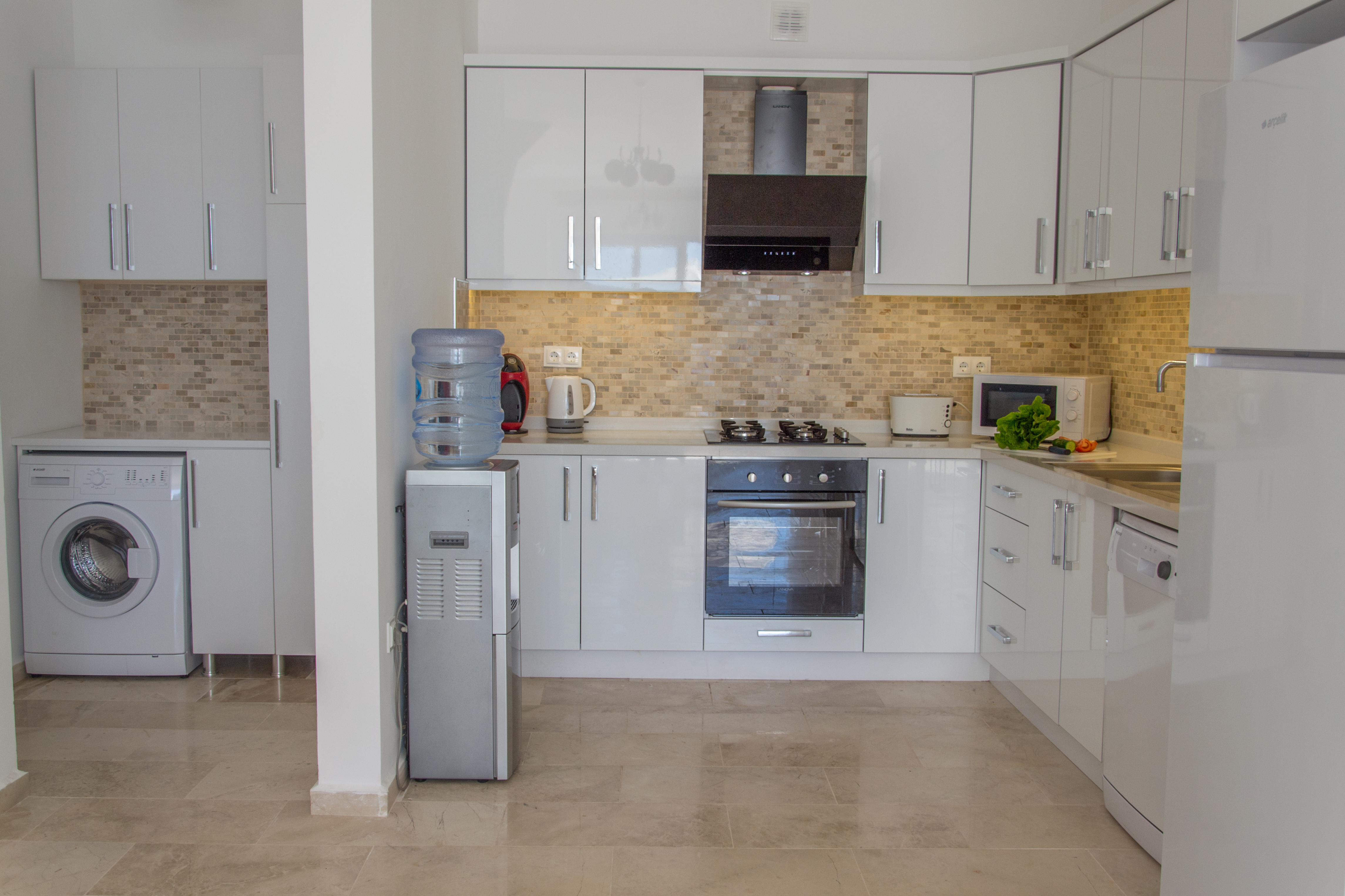 The whole apartment is is simply but tastefully decorated. It is situated close to the petrol station, perfect if you have hired a car although it is not necessary and also close to the bus station. Dalora is in a quiet residential area allowing for peace and tranquility away from the hustle and bustle but also benefits from being close to several supermarkets and is only a 10 minute walk in to the old town, passing many cafes, restaurants and bars and a further 5 minutes to the beautiful marina again with its plethora of bars, shops and restaurants.