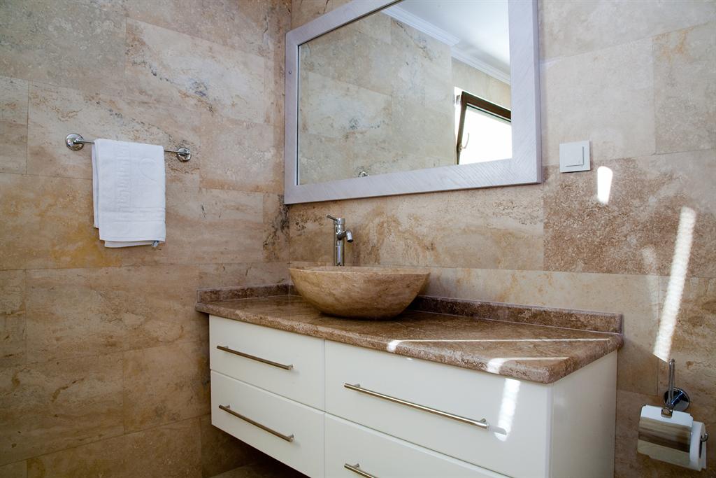 Natural travertine wet rooms to bedrooms 1,2,4 & 5, with stone carved sinks