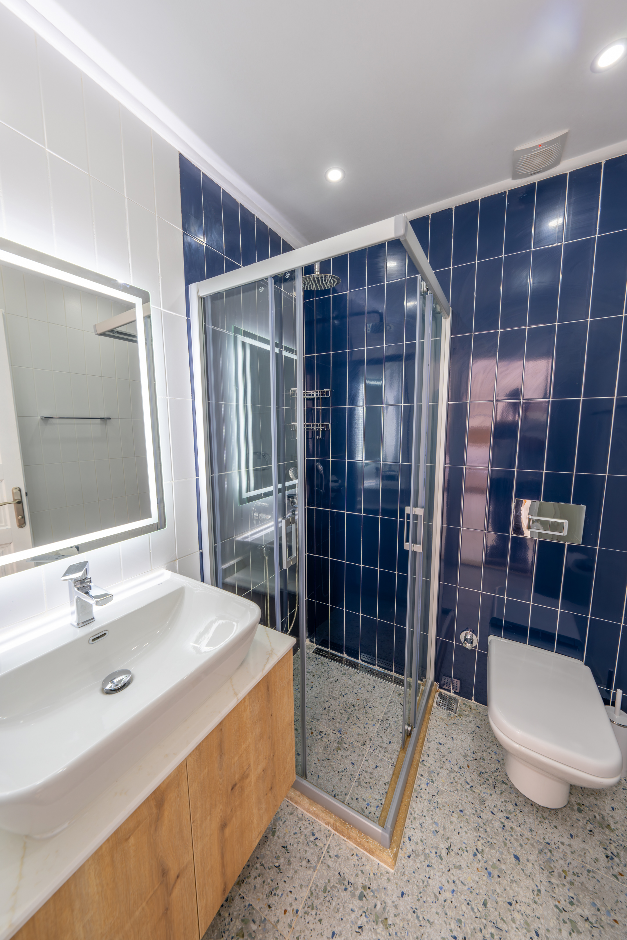 Bathrooms: Ensuite bathroom – this is off the master bedroom, and has a high quality rain forest style shower system, wall hung WC and & a sink with a marble topped cupboard underneath & mirror above. Shower room – adjacent to bedroom 2, this bathroom houses a with shower enclosure with high quality shower unit with rain forest style shower, sink with marble topped storage unit below, wall hung toilet, & mirror.