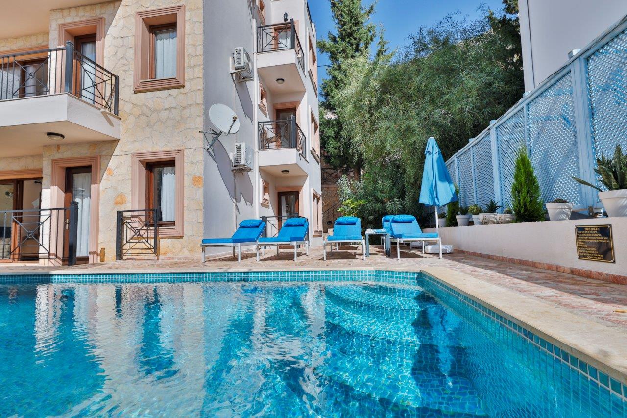 Safa Apartment is a beautifully presented 2 bed apartment, in one of the best locations in Kalkan, just a minute’s walk to the Old Town! Recently renovated, and tastefully furnished and decorated, the apartment offers guests plenty of luxury touches. Located on a small, peaceful complex, with a large pool, shared by only 3 apartments