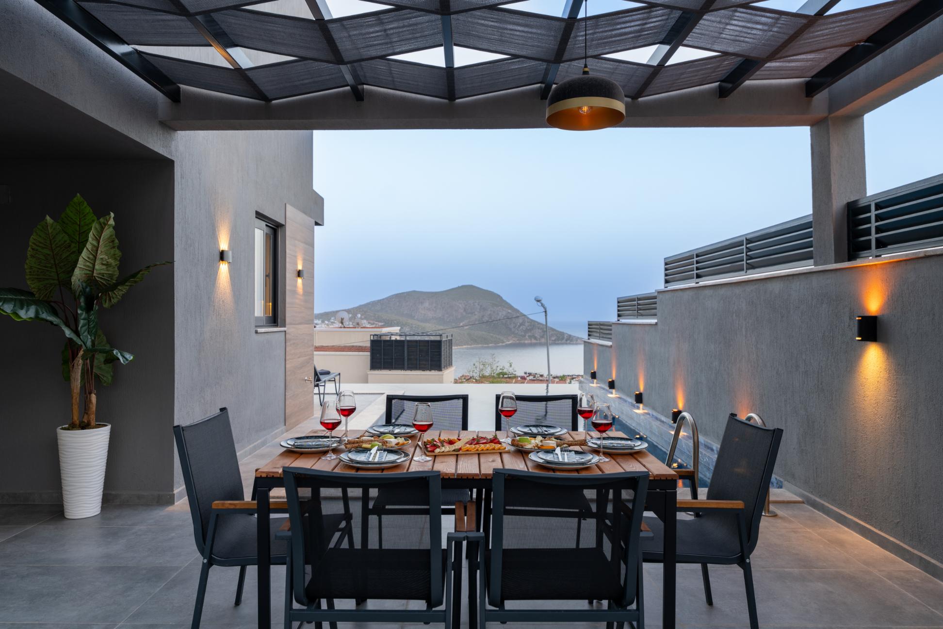 Villa Cihan is a newly built property in the Ortaalan area of Kalkan, a convenient 10-minute walk from Kalkan town centre.Finished to a high standard, the villa comfortably accommodates up to 8 guests and features an indoor pool, cinema room, sauna and table football for sheltered entertainment.