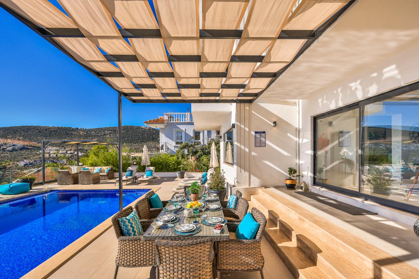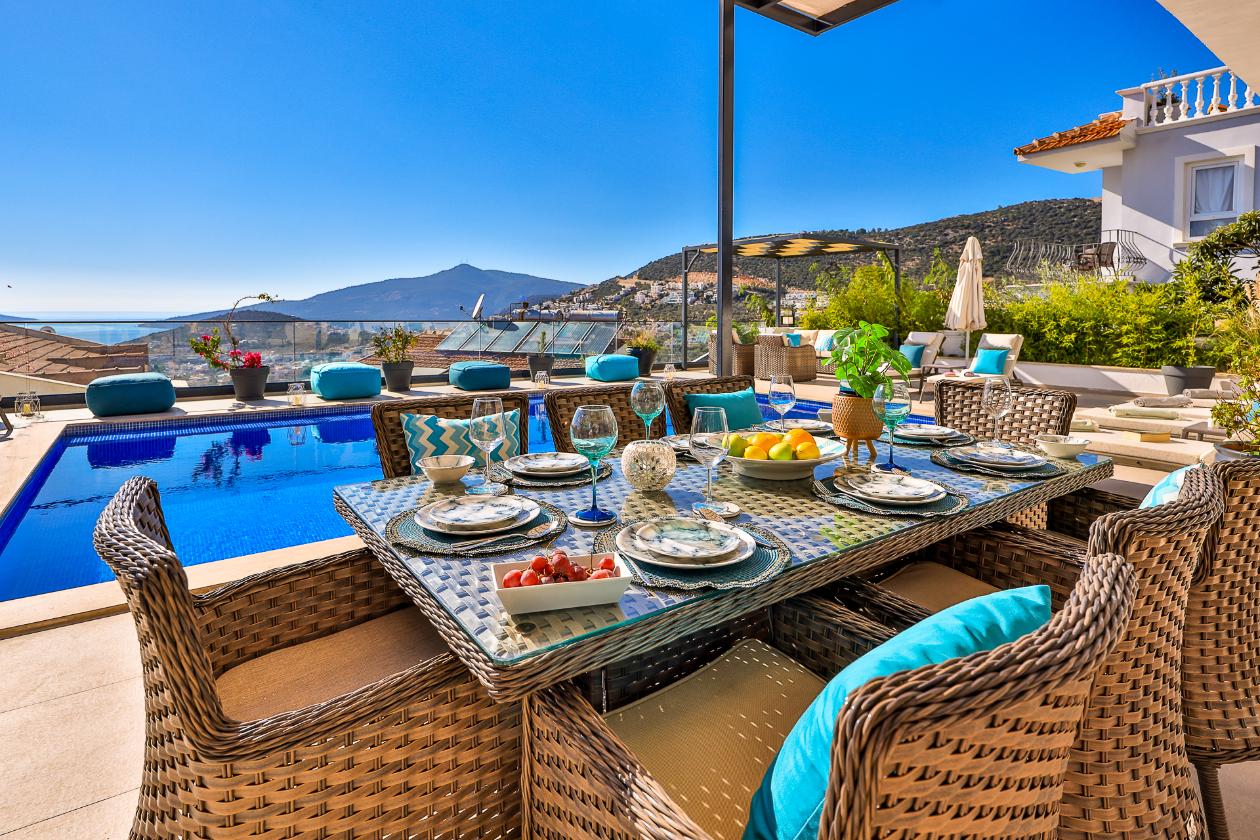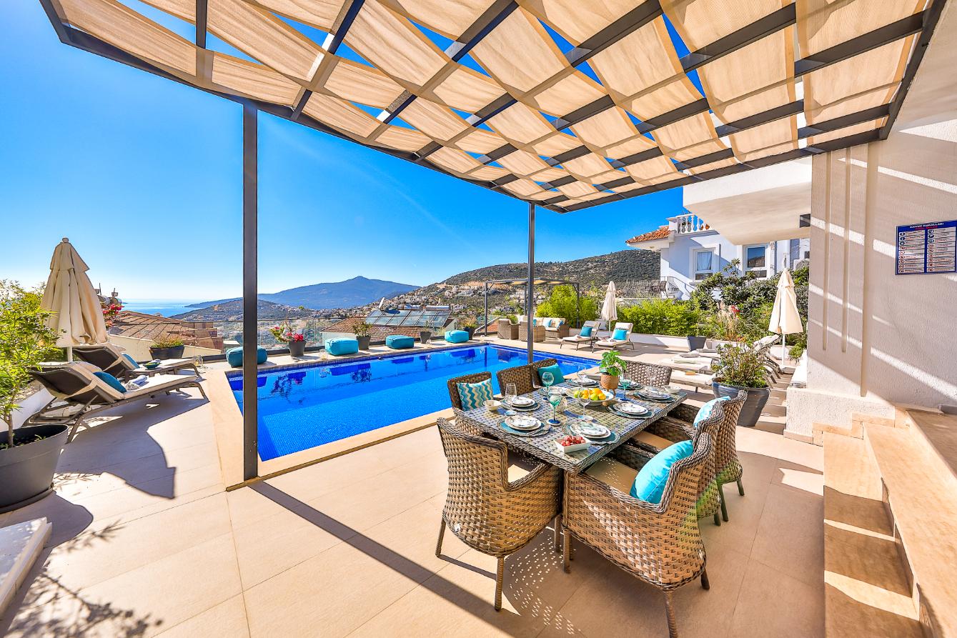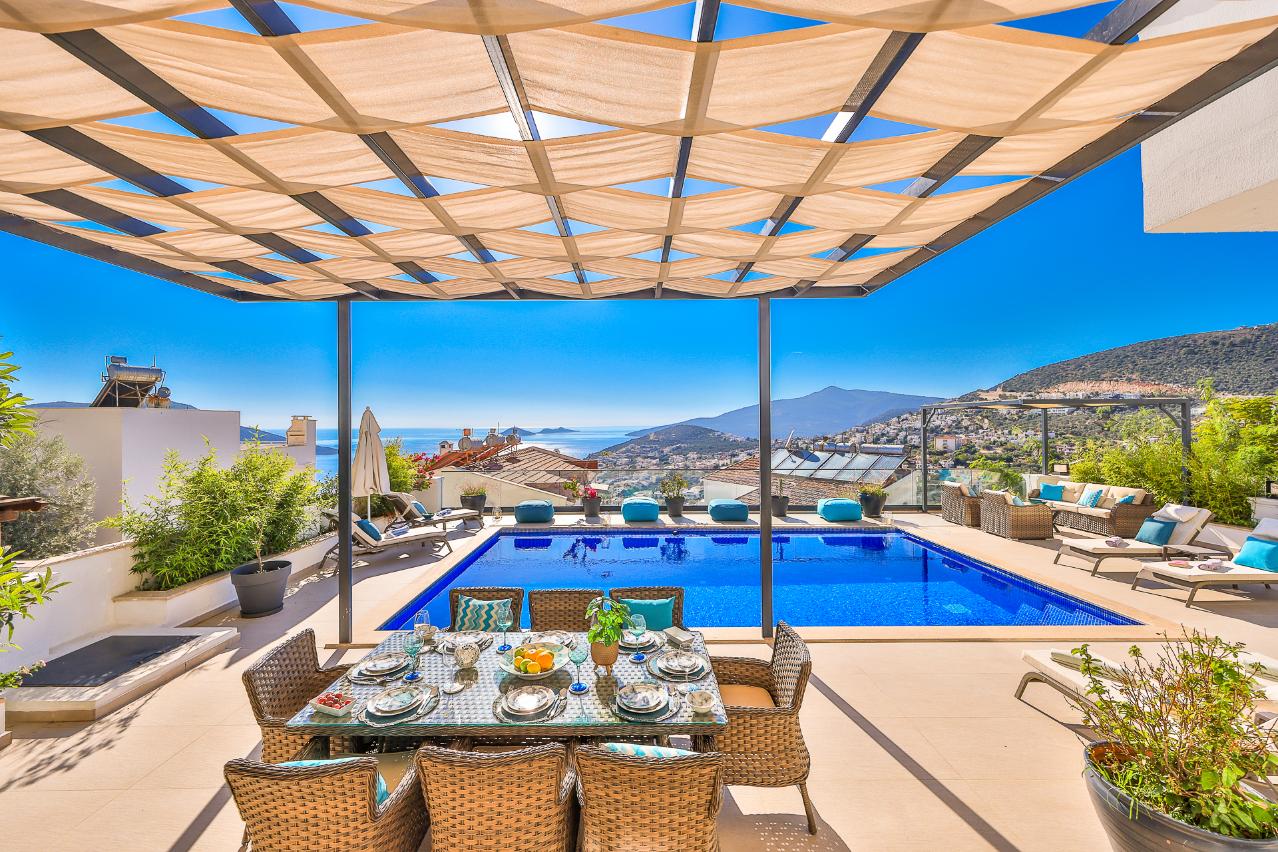 Villa Greenwich affords spectacular views of Kalkan Bay from its elevated position in the Kiziltas area of Kalkan.