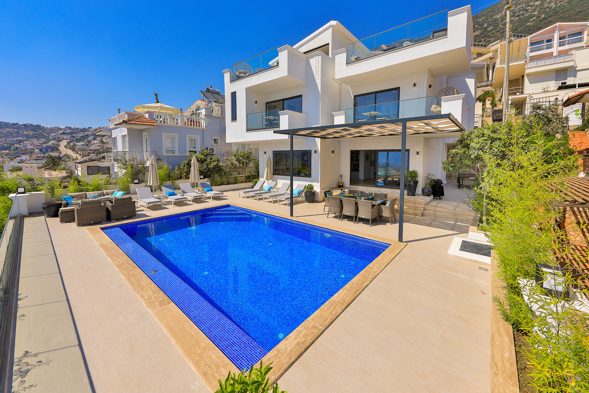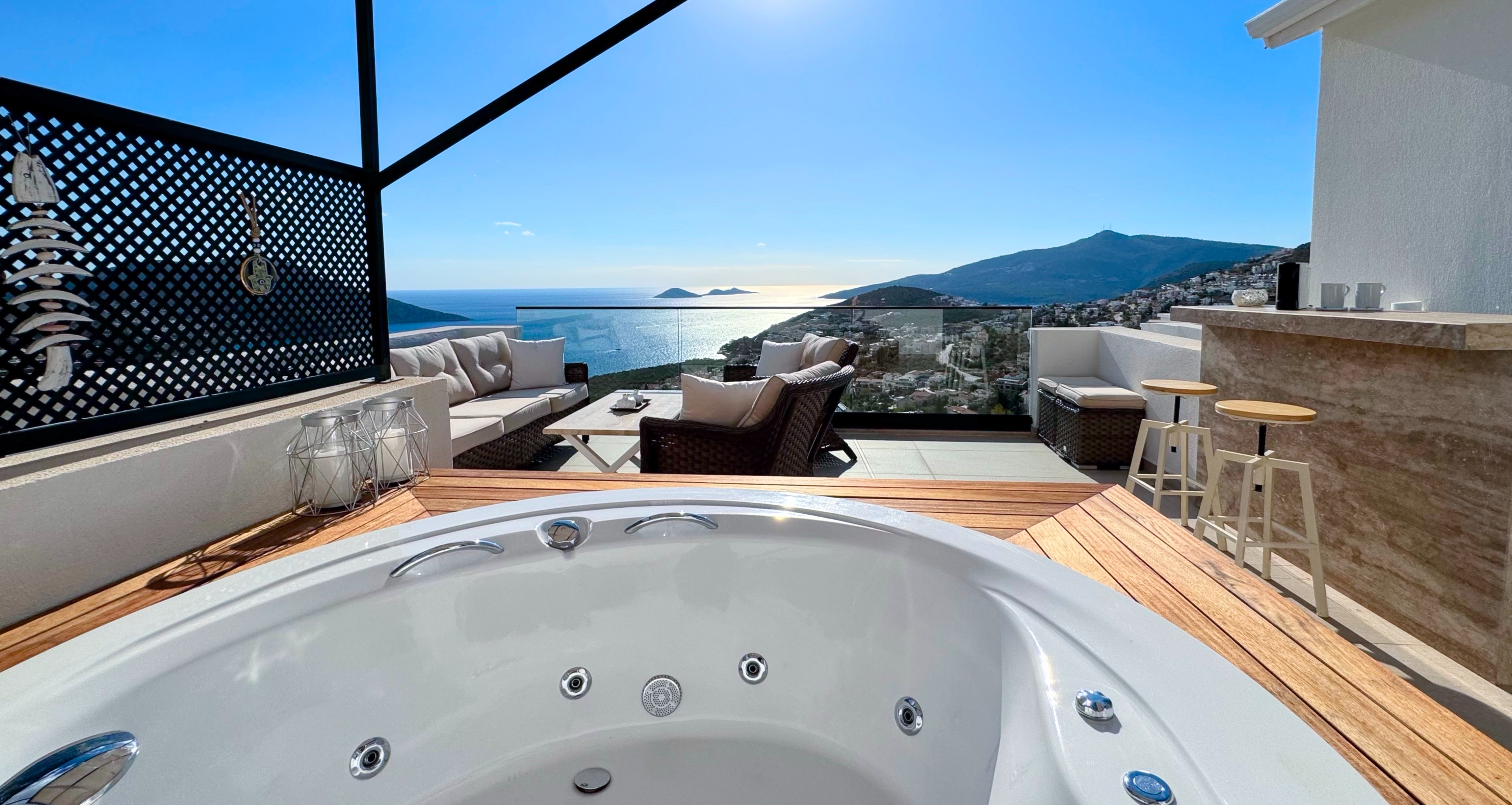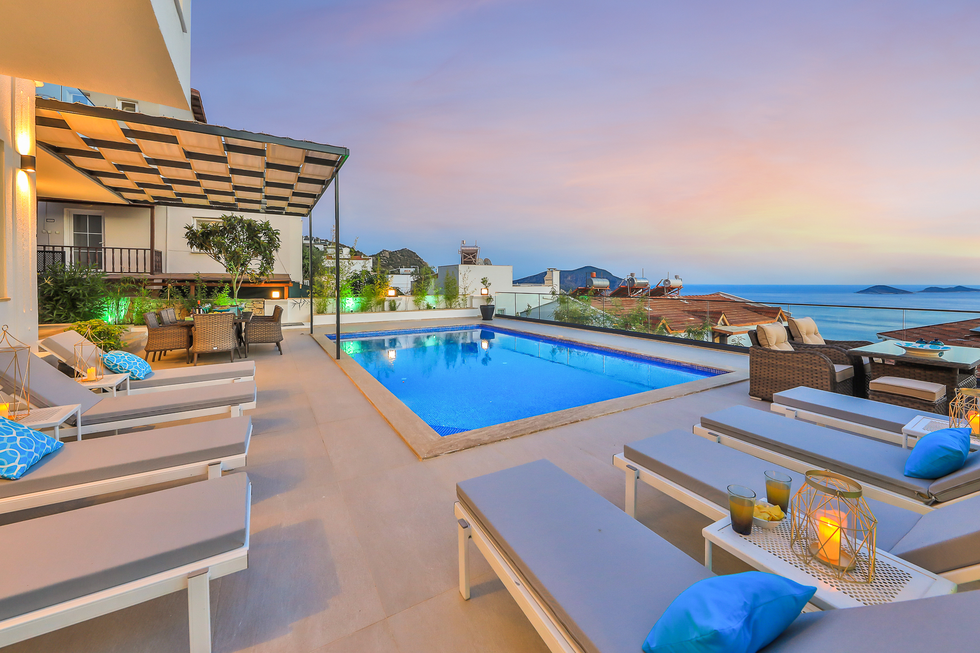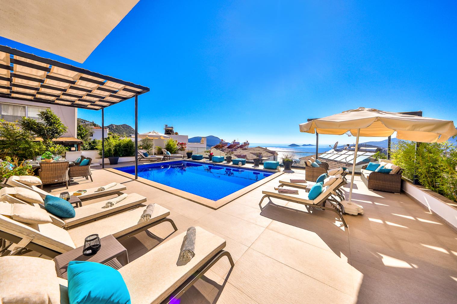 Villa Greenwich affords spectacular views of Kalkan Bay from its elevated position in the Kiziltas area of Kalkan.