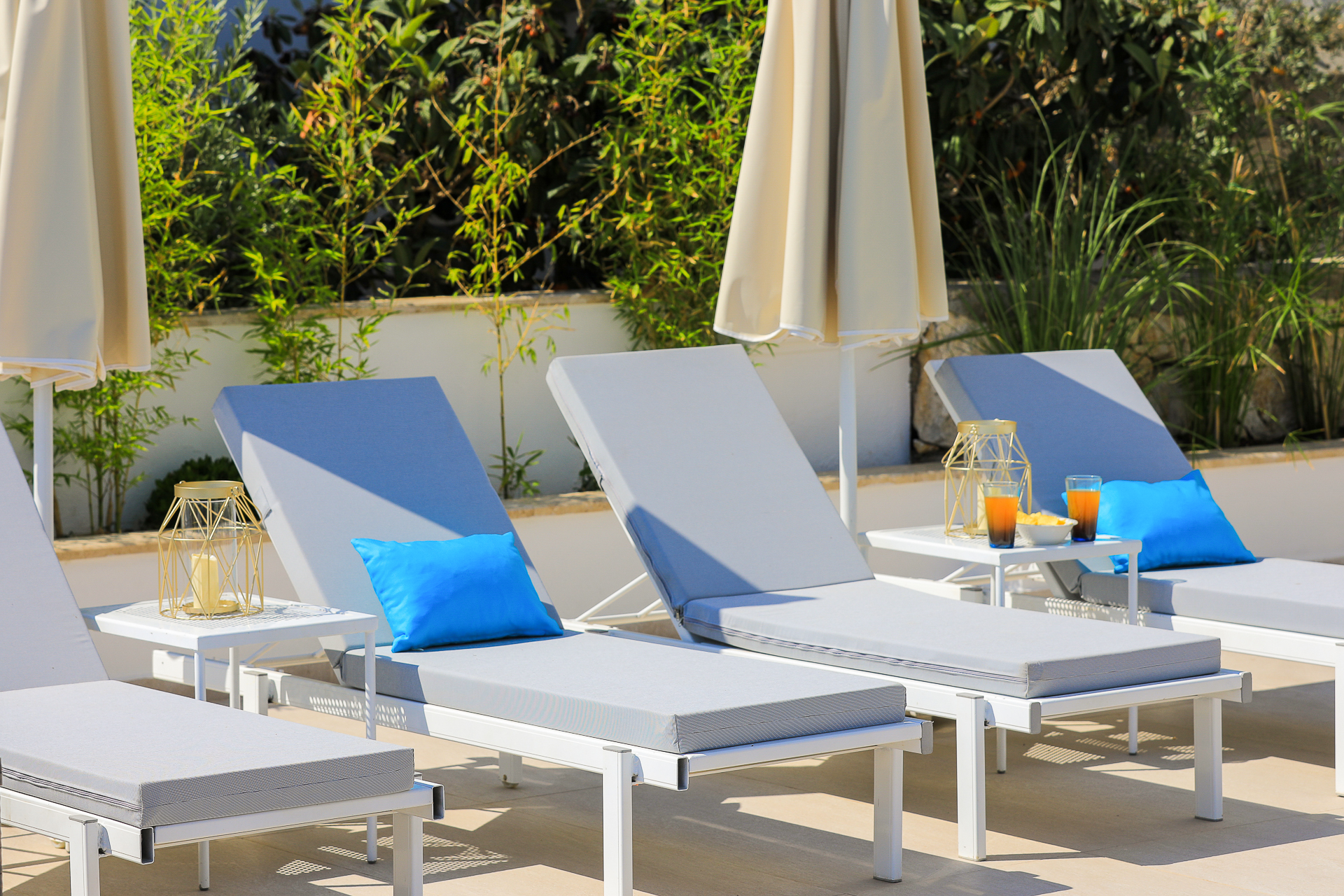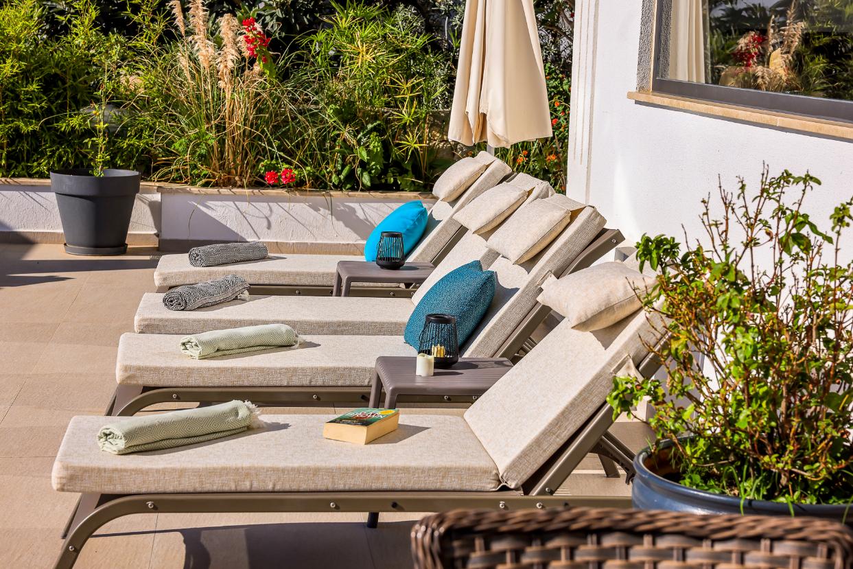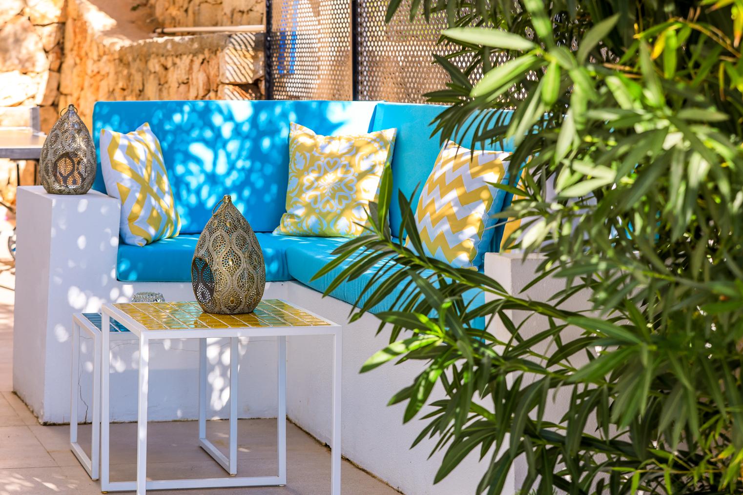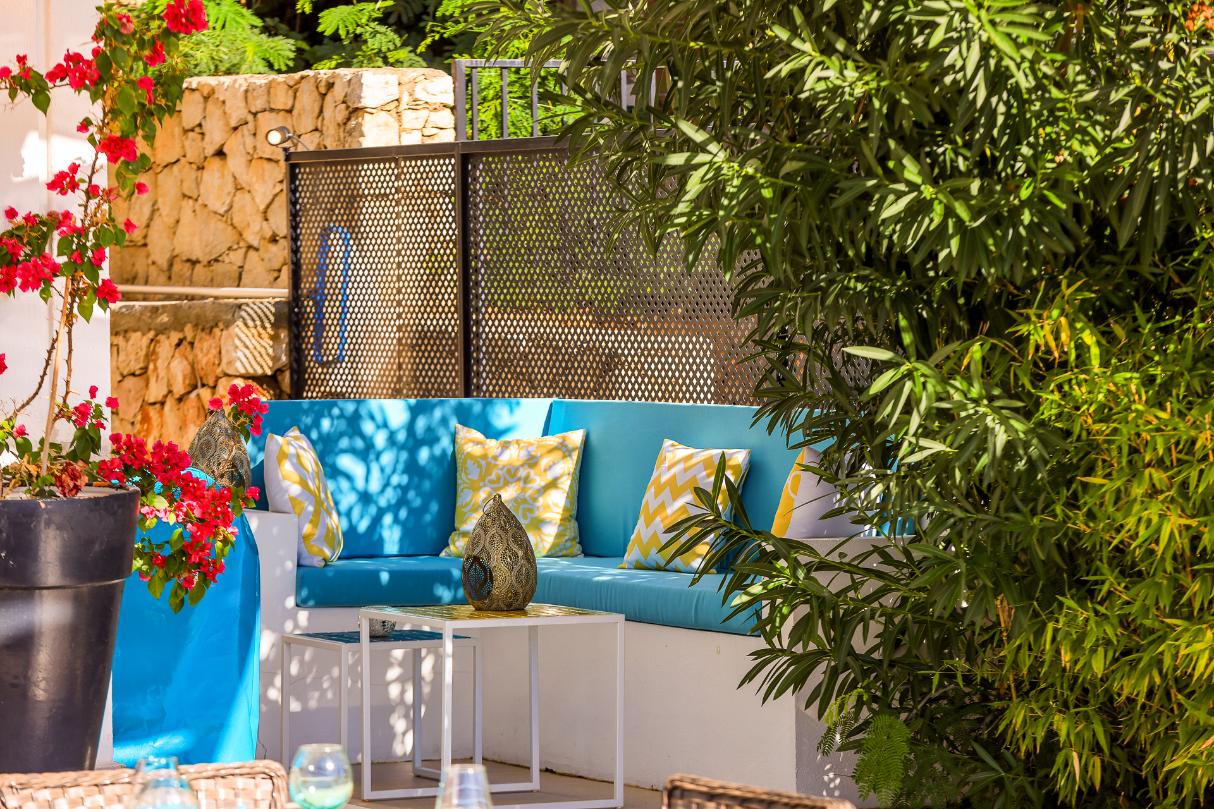 Two of the bedrooms have private balconies, and the master bedroom on the top floor has its own private terrace furnished with sun loungers and a rattan ‘egg’ chair. There is also a separate roof terrace, with its own bar, and jacuzzi and offers the perfect place for a chilled sundowner whilst taking in the views.