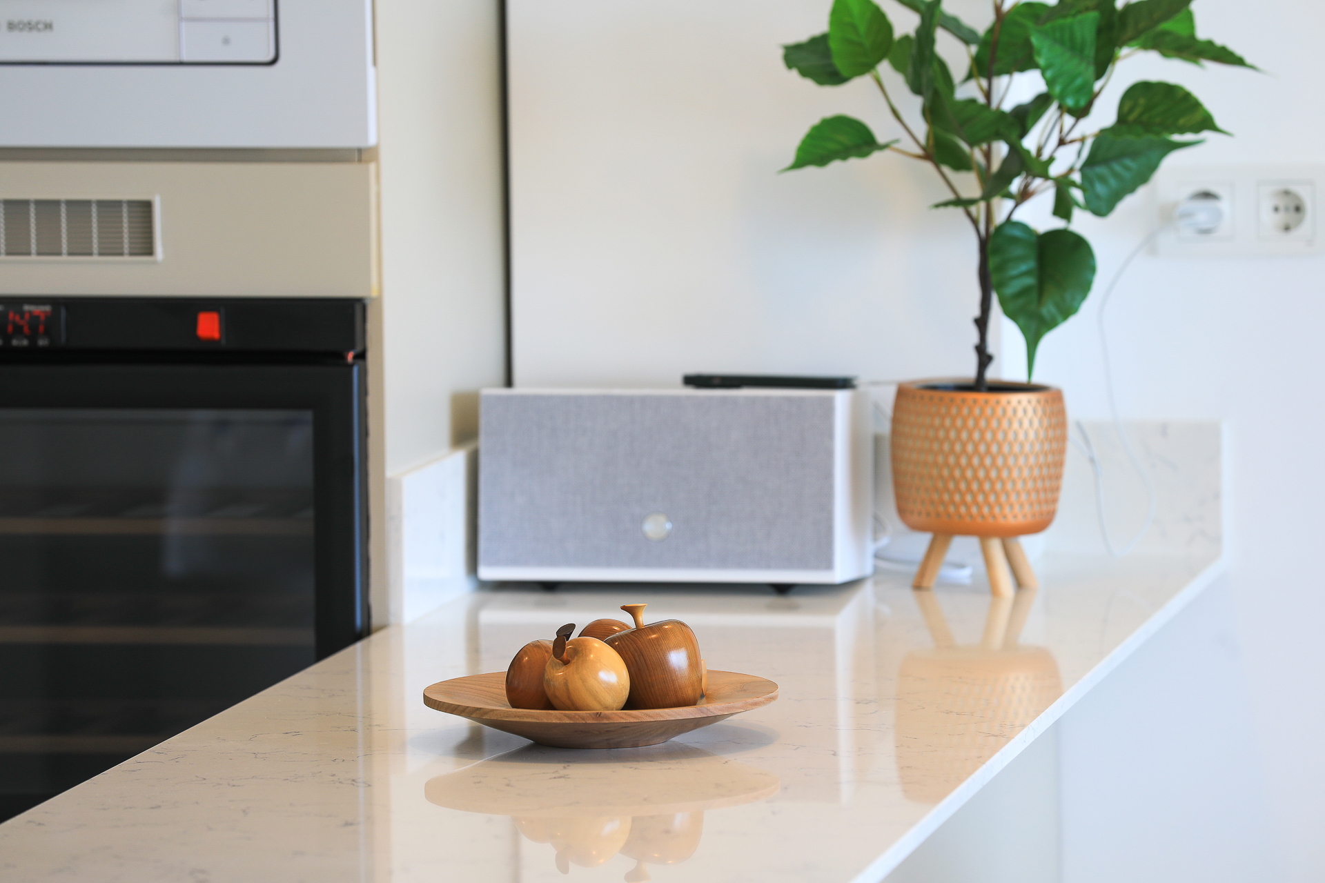 The open plan living area contains a comfortable open plan living area with large L shaped sofa, flat screen TV, plus a well-equipped kitchen with breakfast bar, and bar stool seating. A water cooler, fridge freezer, luxury wine fridge, built in oven, gas hob, microwave, dishwasher, toaster, kettle and cafetiere are also provided (the washing machine can be located in a cupboard under the stairs) There is a separate seating area to the side of the breakfast bar with swivel armchairs. Glass sliding doors lead out from the kitchen area onto the pool terrace.