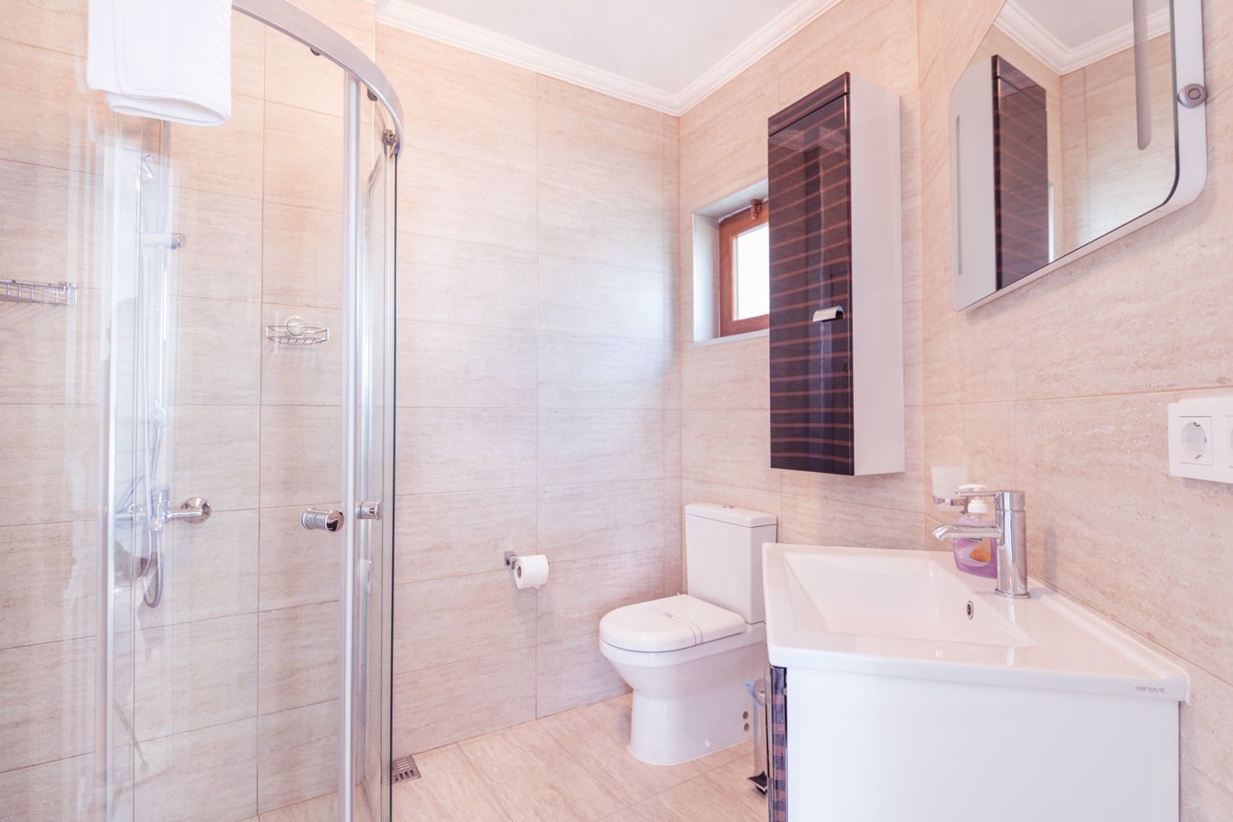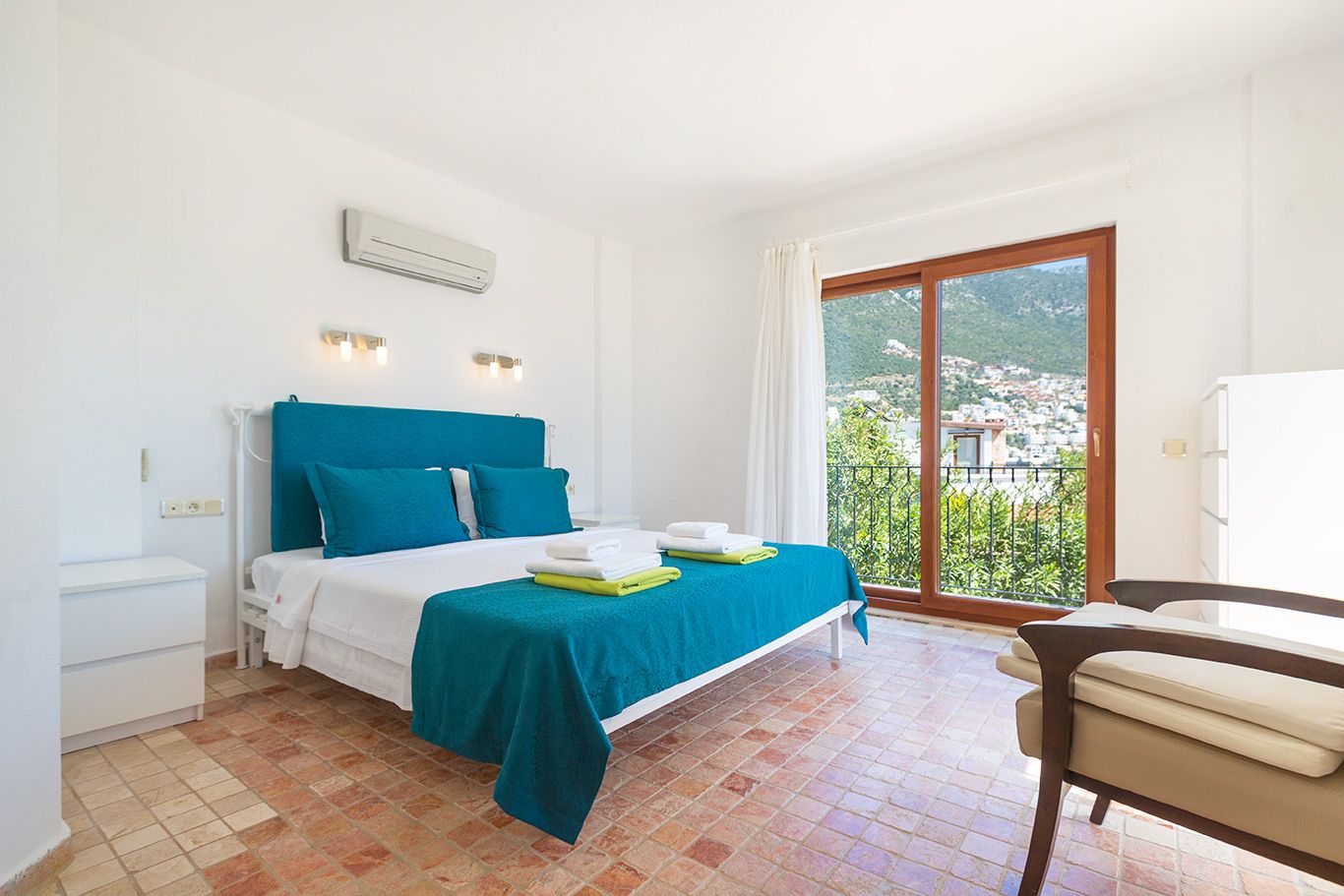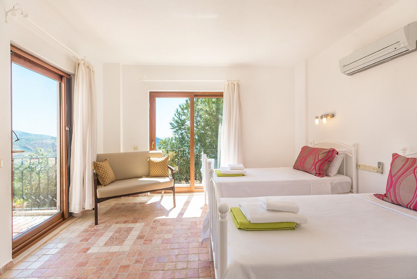 The villa’s second double bedroom and a twin bedroom are situated on this floor.