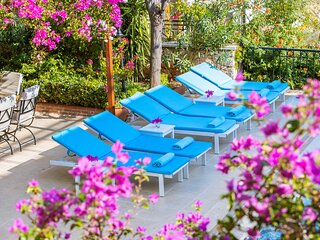 The villa boasts a large terrace with a private pool within beautiful mature gardens. There are plenty of areas to sunbathe on with our six sun loungers and 3 large parasols for those who enjoy the shade. There are plenty of different areas to find peace and quiet and enjoy the stunning views of the beautiful Taurus mountains and sea.