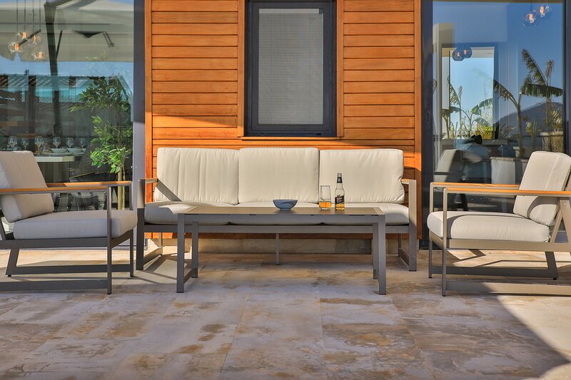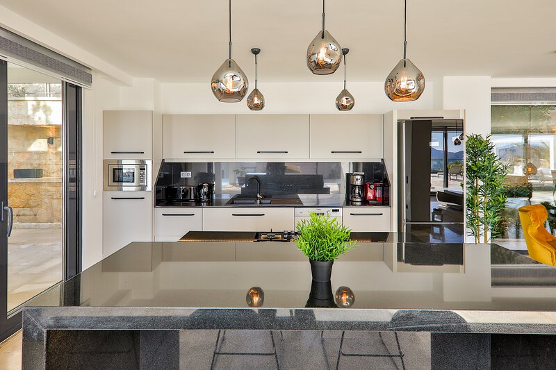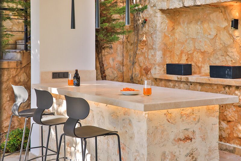 For those who enjoy the heat, grab a bottle of water from the outdoor bar and relax in the unique swing structure while catching more of the sun’s rays. The outdoor sofas allow you to lie back next to the pool while enjoying some shade by pulling the canopy above you. The impressive marble bar has everything you need to create those sundown cocktails. This beautifully lit bar is the perfect place to visit before heading into one of the town's amazing restaurants or lighting the BBQ for a meal on the terrace. You can make a delicious cocktail and take yourself to the outdoor seating area.