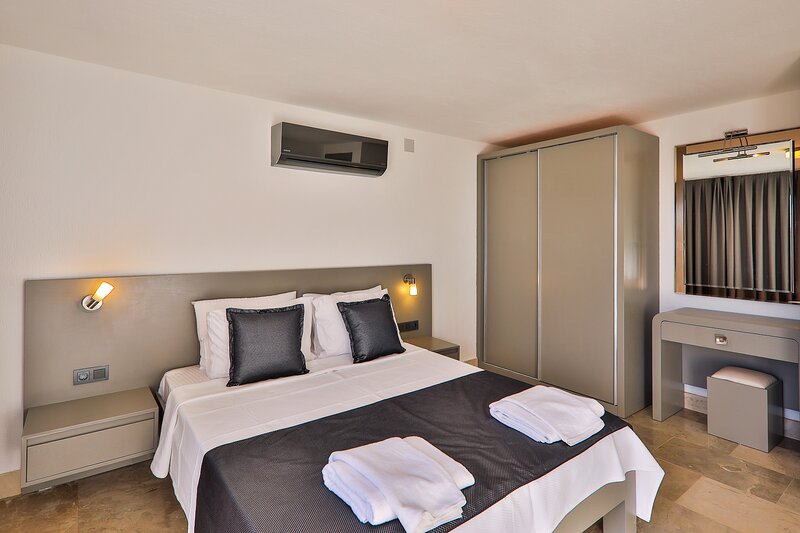 Second floor: The second floor consists of a further en-suite bedroom with double bed, fitted bespoke wardrobes and dressing/makeup area. What makes this bedroom so special is the 180* balcony. The views from this floor are incredible at all times of the day and night. Lower ground floor: On the lower ground floor you will find a further en-suite bedroom with fitted wardrobes and dressing/makeup area. For those who like to stay fit while holidaying, the lower ground floor gym is the perfect place for you.