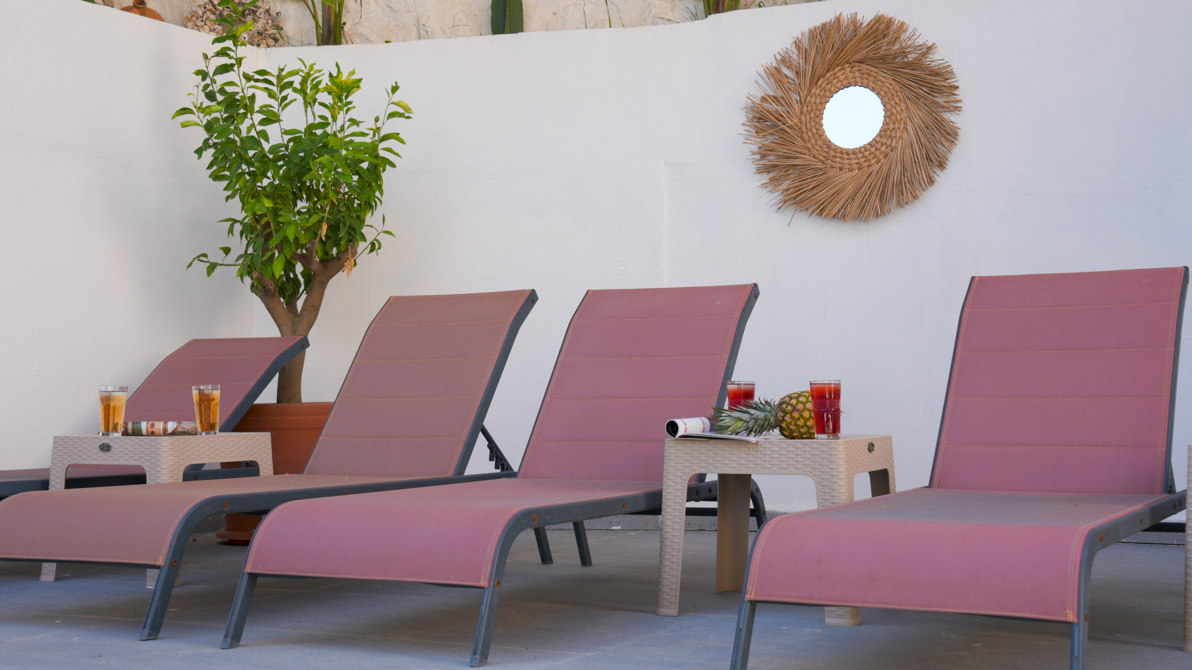 Villa Orange has 3 bedrooms and sleeps up to 6 people; all the bedrooms and outside spaces have an exotioc feel, being tucked away in a quiet spot surrounded by mature palm and olive trees - a peaceful, secluded environment.