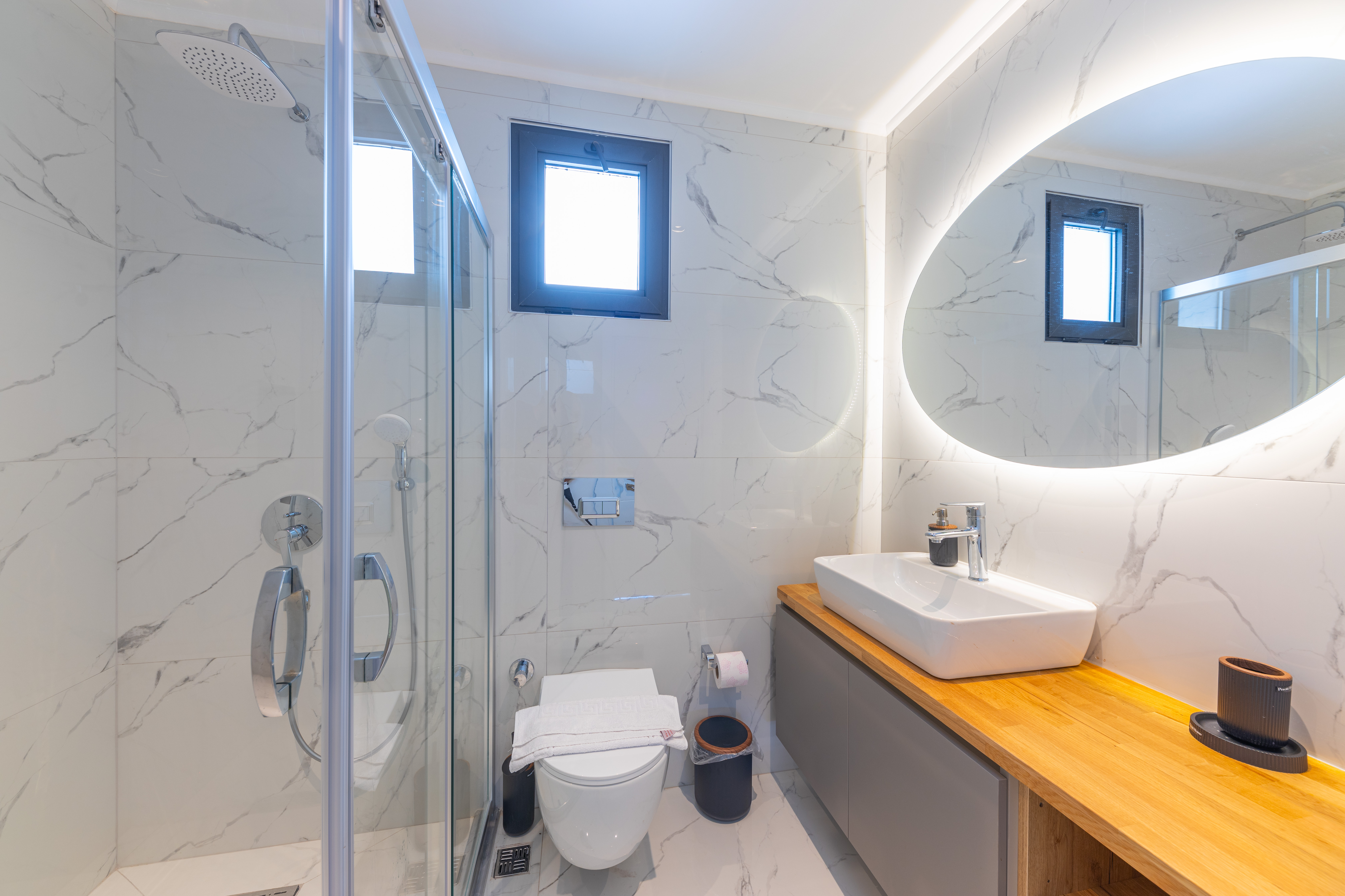 The interior of the villa has been designed for comfort and a modern living with 5 double bedrooms, 1 twin bedroom, all with ensuite wc and bathroom.