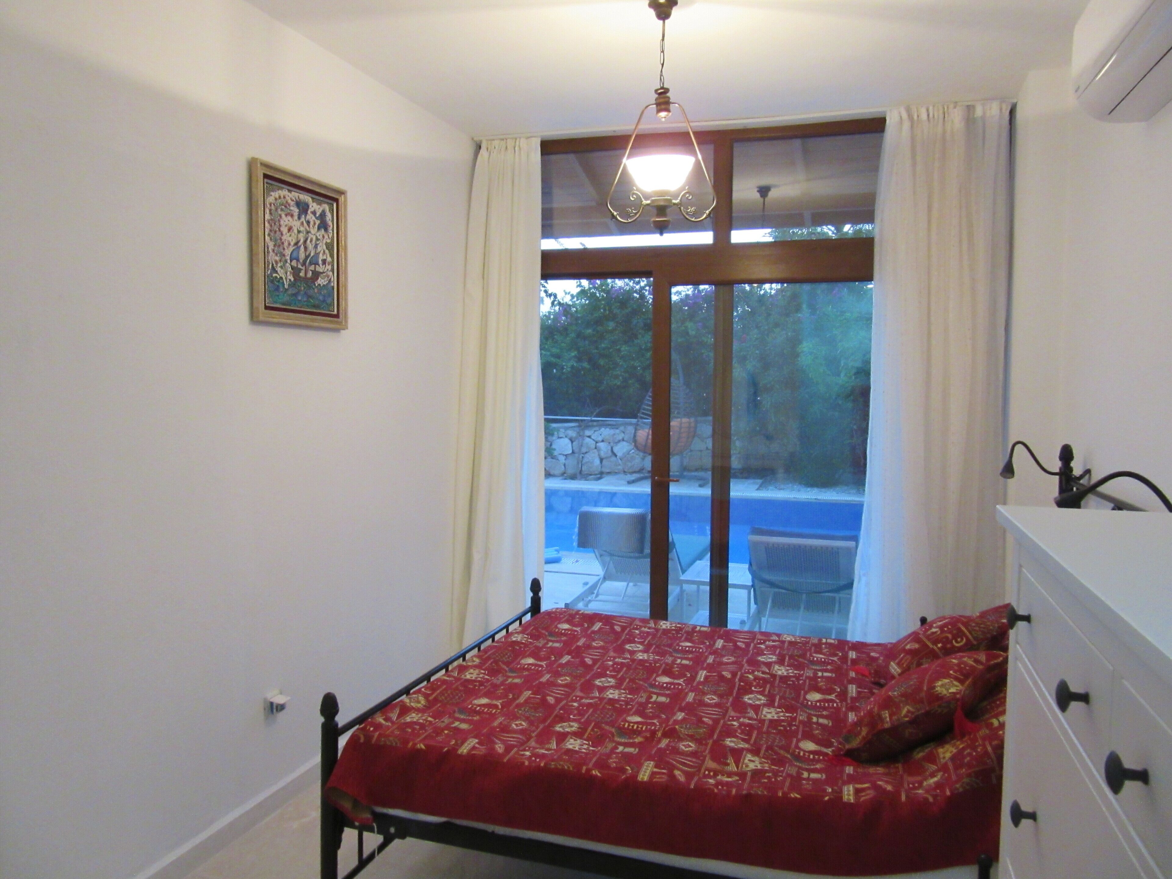 The large pool terrace also has a BBQ and table and chairs for eating outside - and there are 6 loungers and umbrellas for relaxing by the pool. The villa is furnished in a tasteful traditional style with furniture and arts and crafts, made by local artisans, giving a warm and welcoming ambiance. There is a large flat screen TV and DVD player and a selection of DVDs for your enjoyment. There is also a large selection of books.