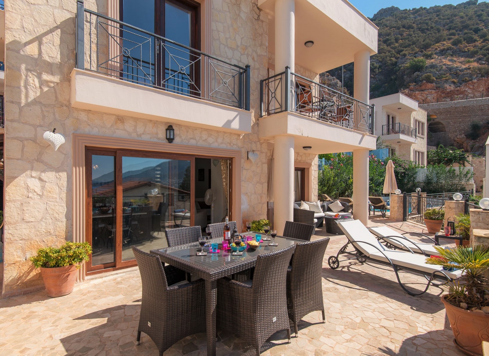 The prestigious Villa Sultaniye is a very special spacious villa with spectacular sea views, enviably located in the heart of Kalkan Old Town. This stunning villa, which has been beautifully furnished throughout, is on the exclusive Dere development only a genuine 2 min stroll to Kalkan’s restaurants, harbour and beach.