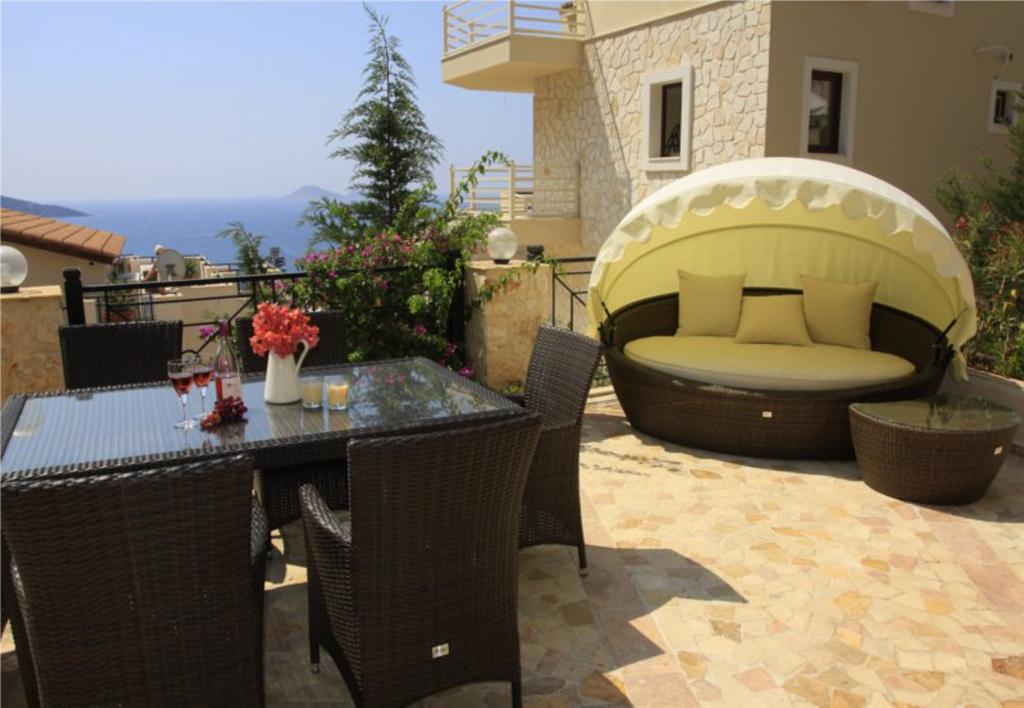 The 3 bedroom Villa Sultaniye offers panoramic sea views and all rooms have balconies from which guests can enjoy the vista. The villa also boasts a beautiful private freshwater pool and very spacious sunbathing area, again with incredible sea views.