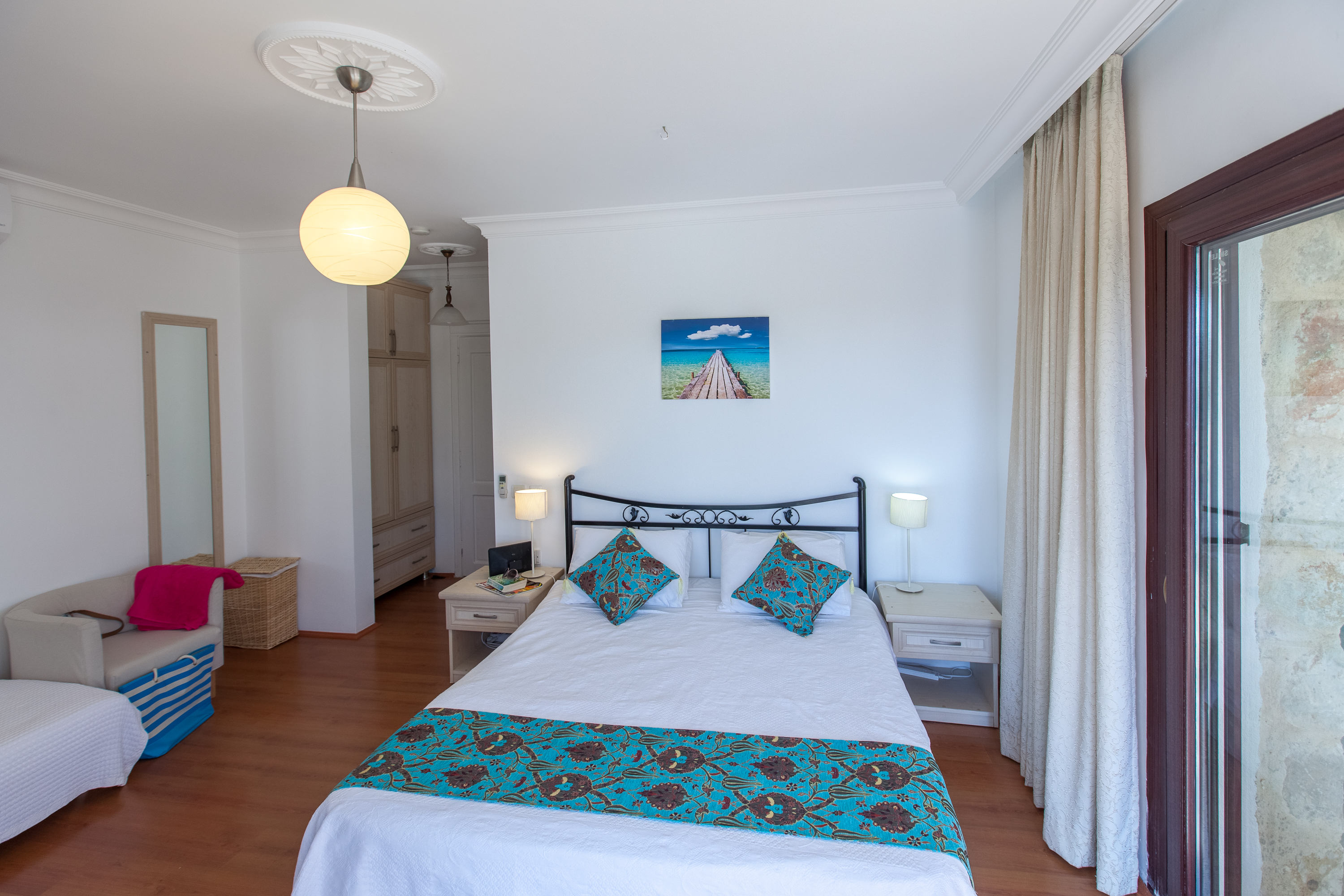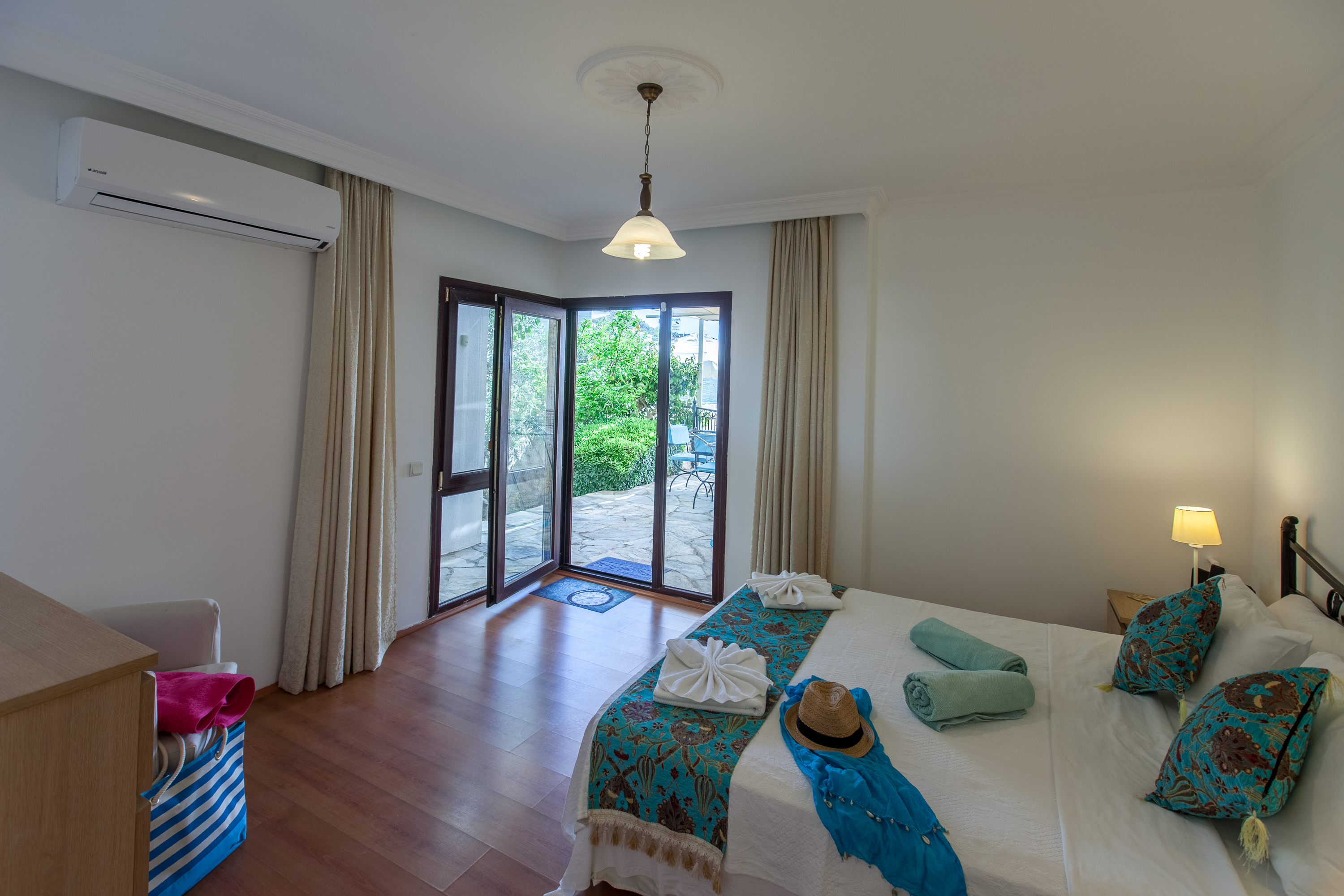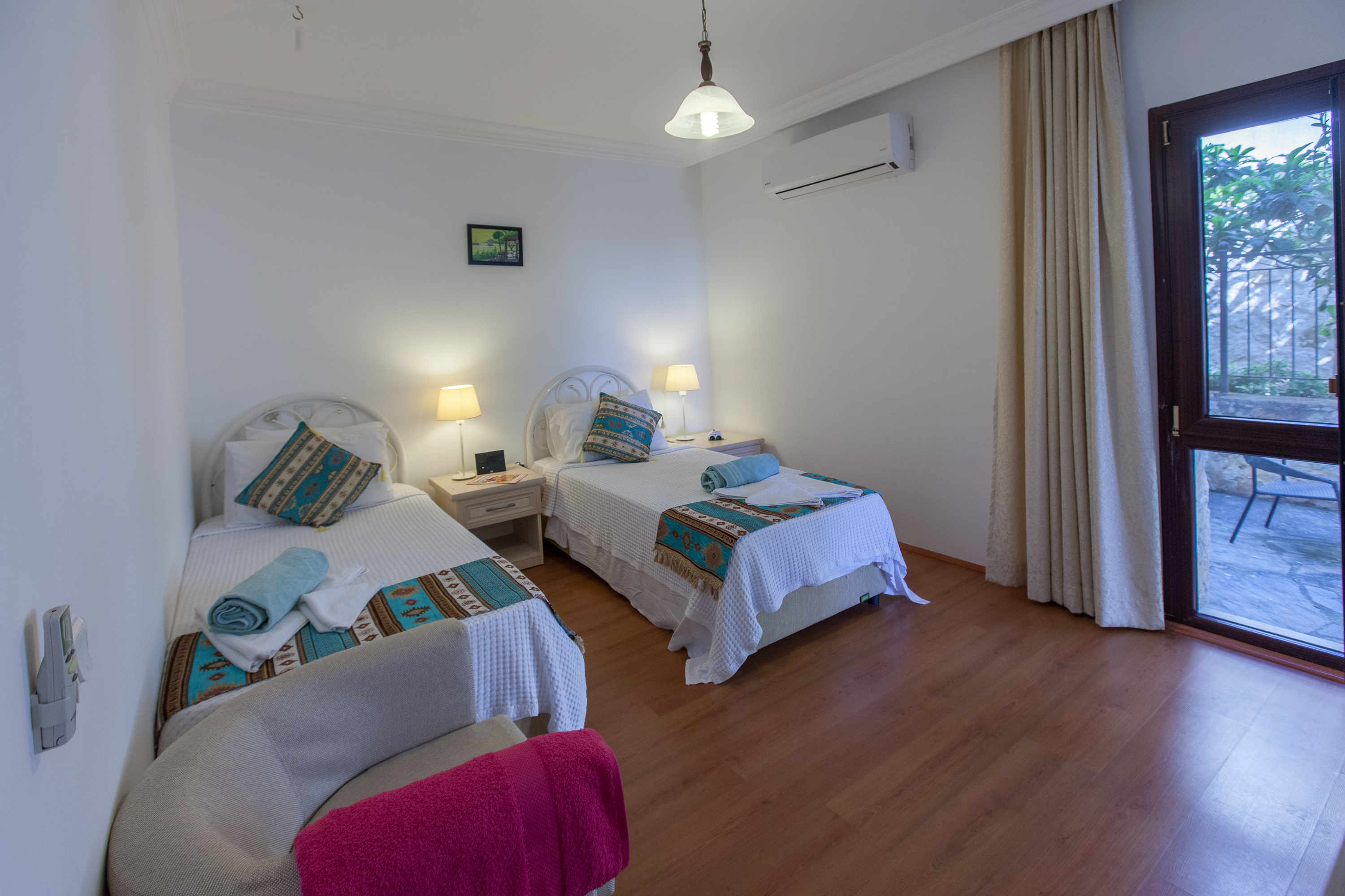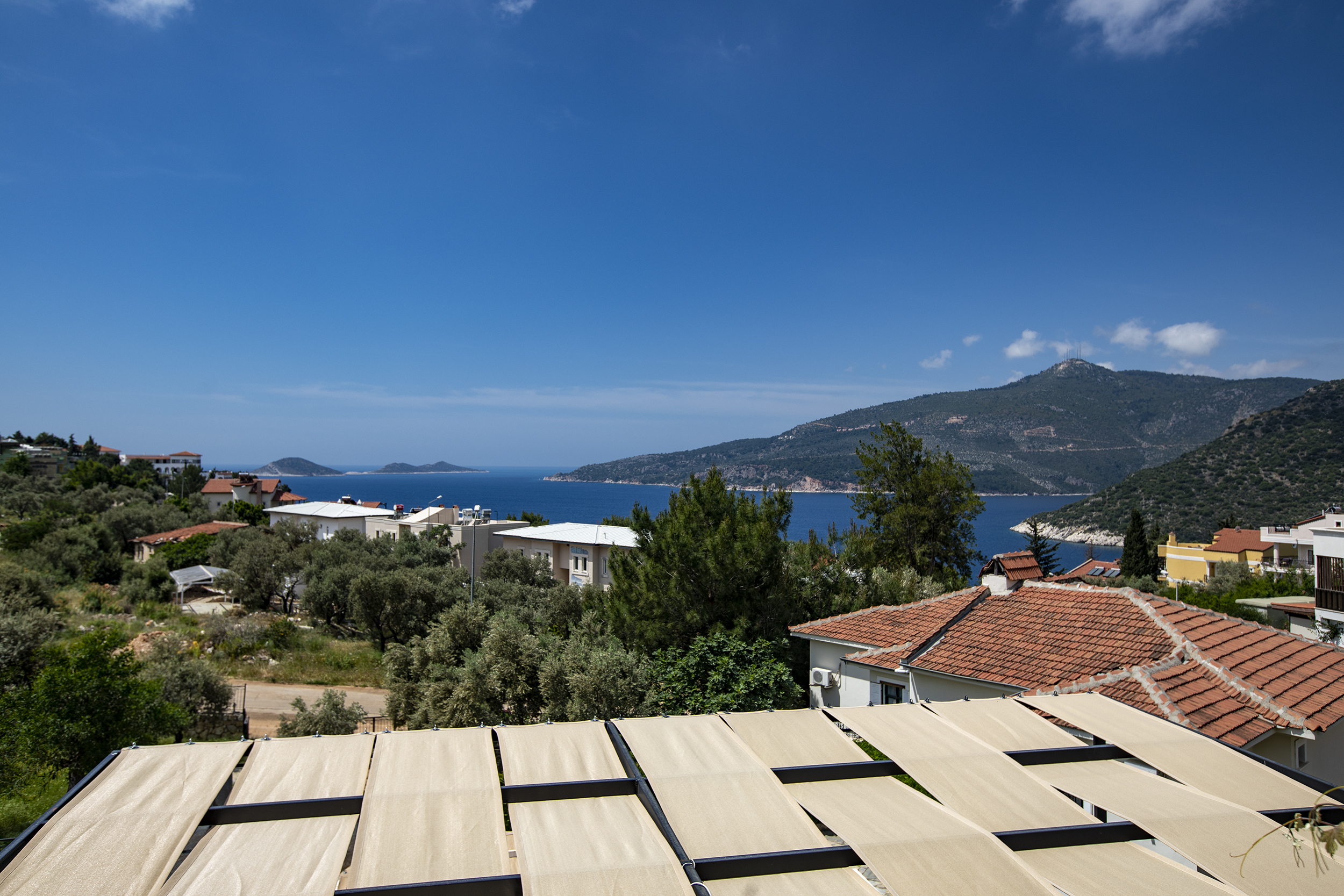Villa Zeytin Koru is very close to the Kalamar road so it is a fairly flat 15-20 minute stroll to and from the top of the old town. This makes it possible to walk into the centre of Kalkan even in the height of summer and it is a pleasant stroll back after dinner without the need to take a taxi! There are small bars and cafes along the road so you can stop for shade and refreshment or a night-cap if required! The sea-front and beach-club at Kalamar Bay are closer, but the walk is obviously steeper, approx 5-10 minute down and slightly longer on the way back. If you visit the beach club they will provide complimentary transport back to the villa to avoid the climb back up. There are also two mini-markets and several restaurants and cafés close to the Villa (within a 5 minute walk) so a car, although useful, is not essential. Airport transfers can be arranged on request at additional cost.