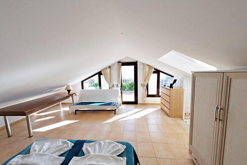 It has a slightly upside-down layout but to great effect: three of the bedrooms (two king-sized doubles and a twin) are on the ground floor, with direct access to the pool terraces. The main living area and kitchen are on the first floor with a covered dining terrace with sea views and external steps down to the pool area. The fourth king sized double bed-room occupies the whole of the top floor and has a large terrace with sea views and external steps to the dining terrace and pool area. All the bed-rooms are en-suite and large enough to accommodate a cot if required. there are also three sofa-beds, providing extra flexibility and inceasing the total capacity to 10 people.